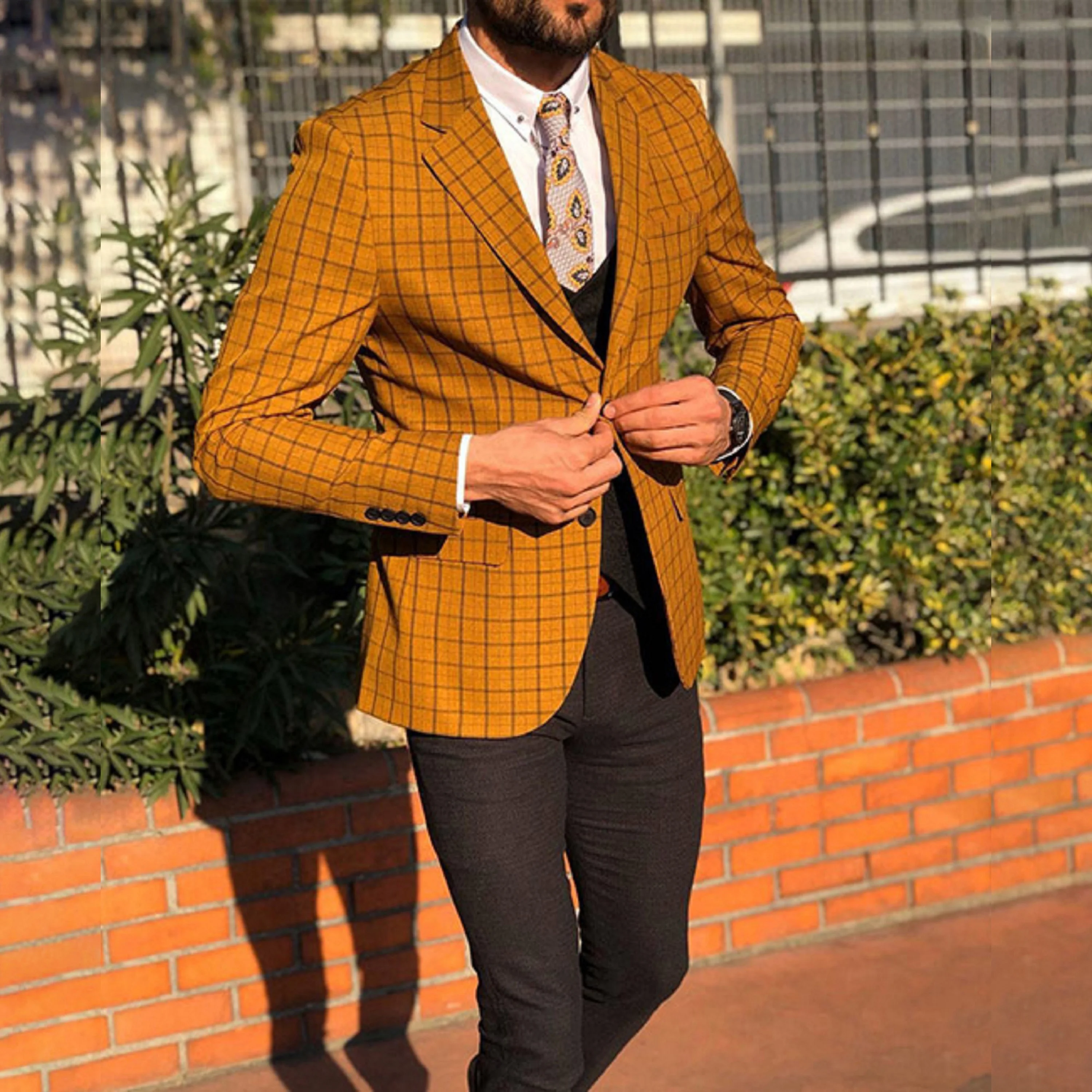 - > Jaqueta xadrez elegante masculina com bolsos ao ar livre casual terno de dois botões adequado para uso diário masculino