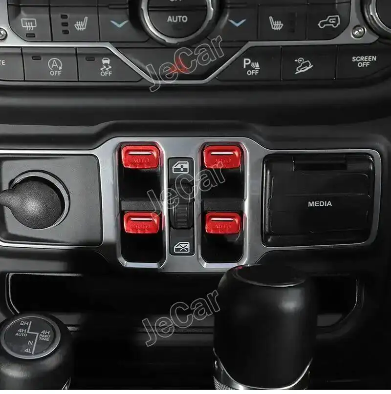 - > Jecar botão de controle da janela capa adesivos ornamento para jeep wrangler jl/jt gladiador 2018 up molduras interiores do carro acessórios