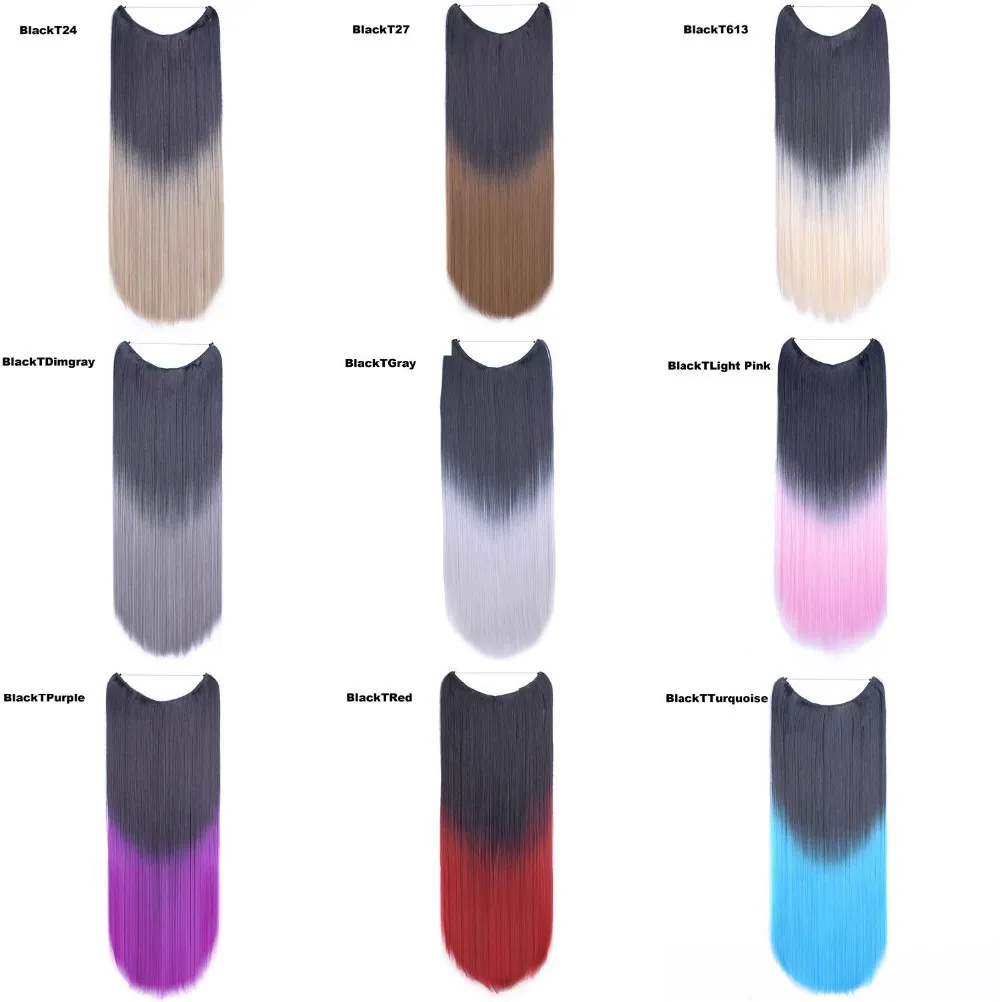 jeedou Extensões de Cabelo Sintético Liso com Franja 22" 55cm 50g Preto Rosa Cinza Apliques Simples Femininos