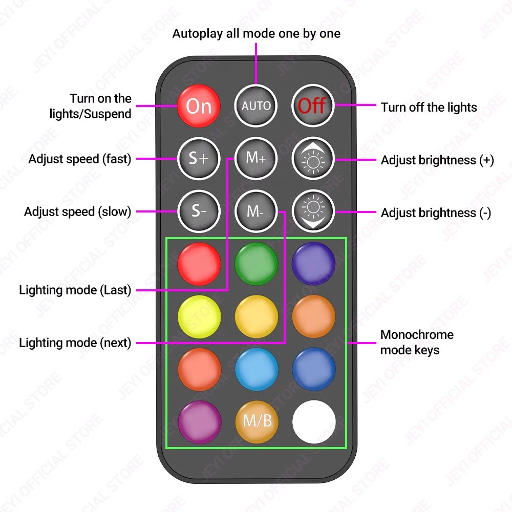 1. If the remote is lost, connect the restart button of the main unit to this port to change the lighting.