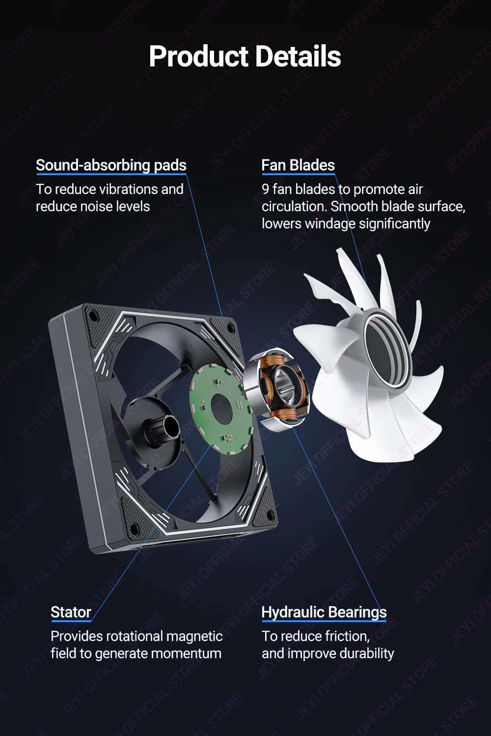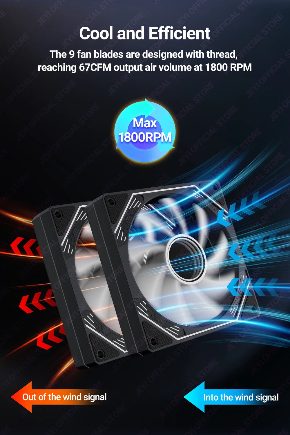 The 9 fan blades are designed with thread, reaching 67CFM output air volume at 1800 RPM