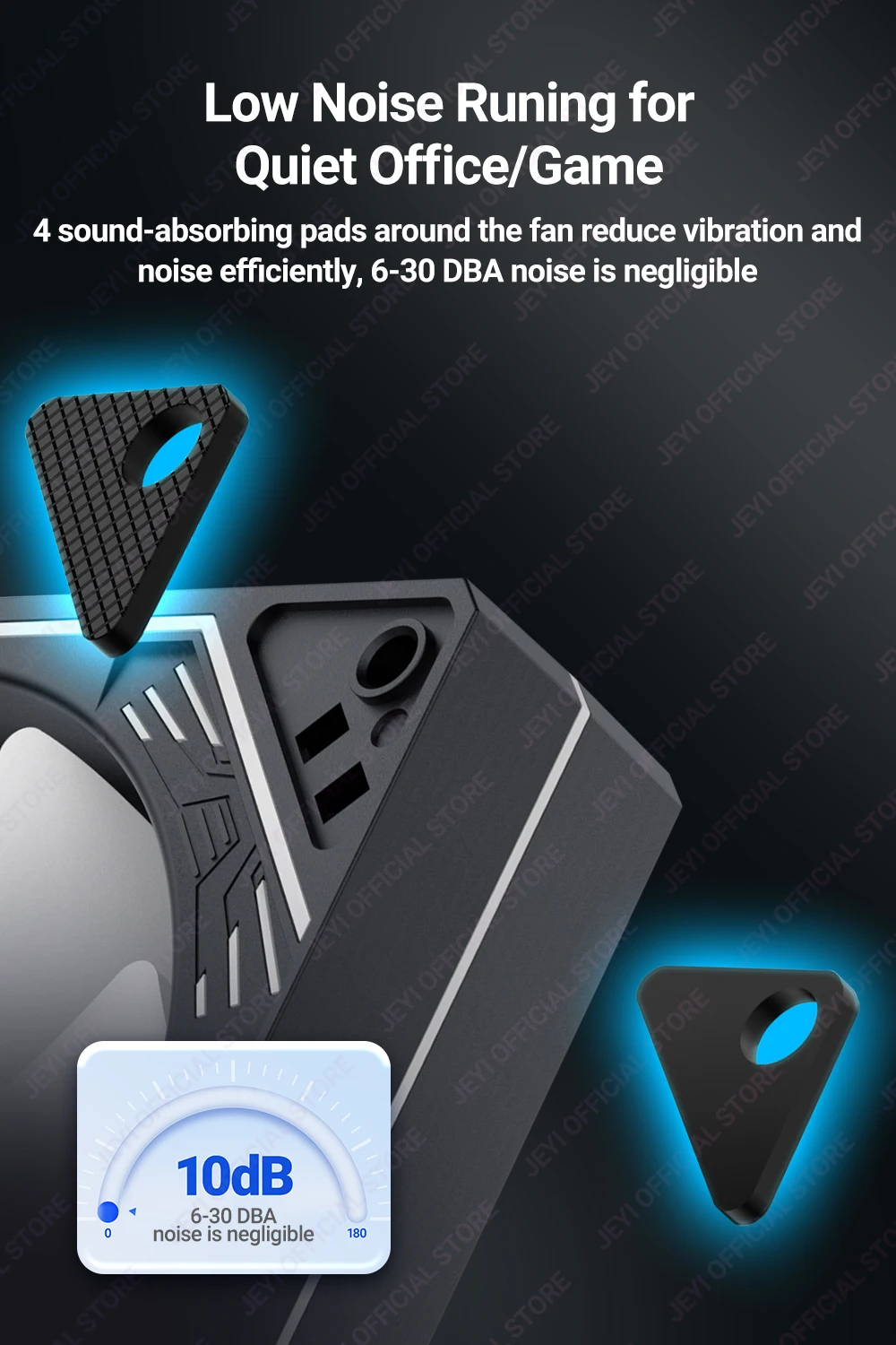 4 sound-absorbing pads around the fan reduce vibration and noise efficiently, 6-30 ± 10% DBA noise is negligible