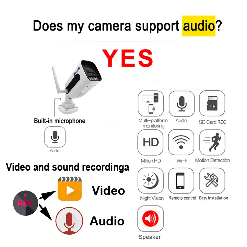 Support for recording video and sound via a Micro SD card or computer, you can remotely play back video and sound (history) via the mobile app.