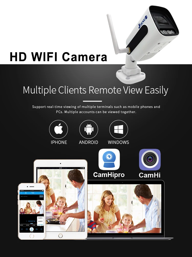 See everything in details with true HD. Get clearer and sharper images/videos than other wifi ip camera. With exceptional night vision, you can see clearly even in the dark. Day or night, indoors, JIENUO won't stop protecting you. You can also check whether your baby is having a sweet dream at night on your mobile phones
