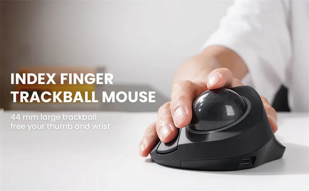 Equipped with a 44mm trackball, move your cursor with one finger movement instead of moving your wrist and arm. It will effectively reduce fatigue and strain for your wrist and arm.