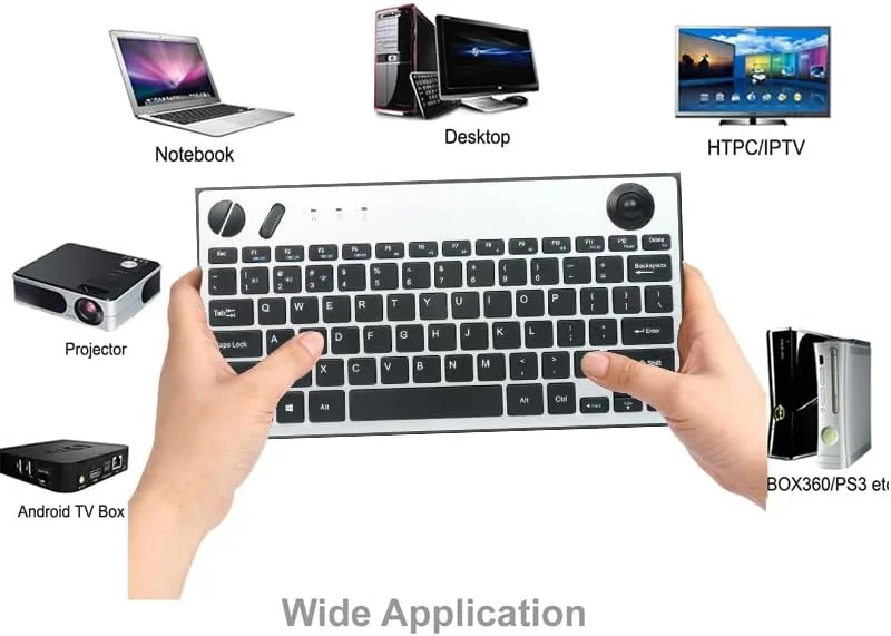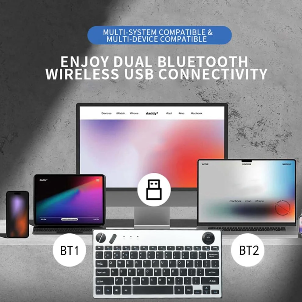 JOMAA Teclado trackball sem fio com retroiluminação de 78 teclas, teclado sem fio Bluetooth 5.0 e 2.4G com trackball para Windows Mac iOS