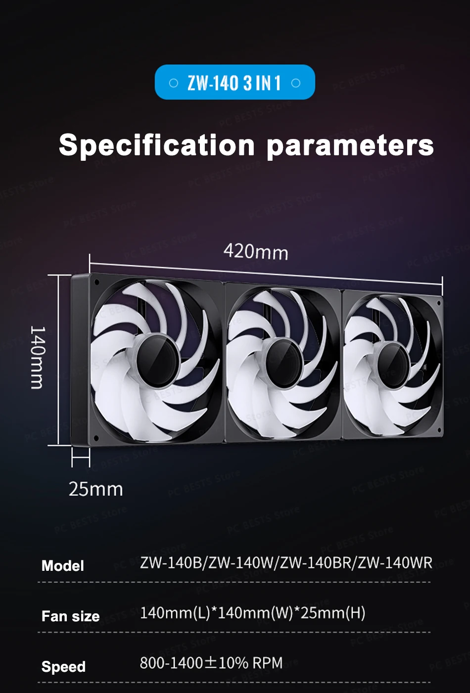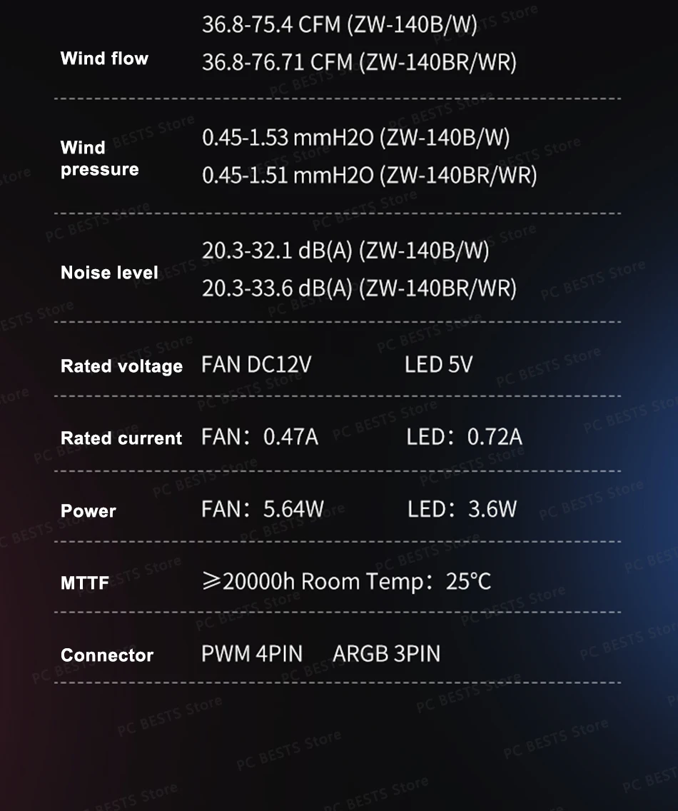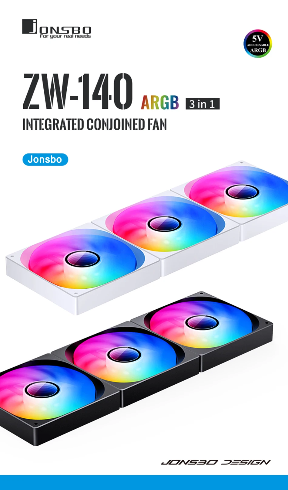 - > Jonsbo ZW-140 ventilador case de computador 140mm 4pin pwm 5v argb ZW-140BR cpu ventilador de refrigeração kits de ventilador dianteiro/reverso