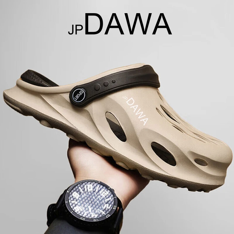 Jp Dawa-Chinelos de pesca leves antiderrapantes masculinos, sandálias de furo para dirigir, chinelos de praia de jardim de lazer, verão, 2024