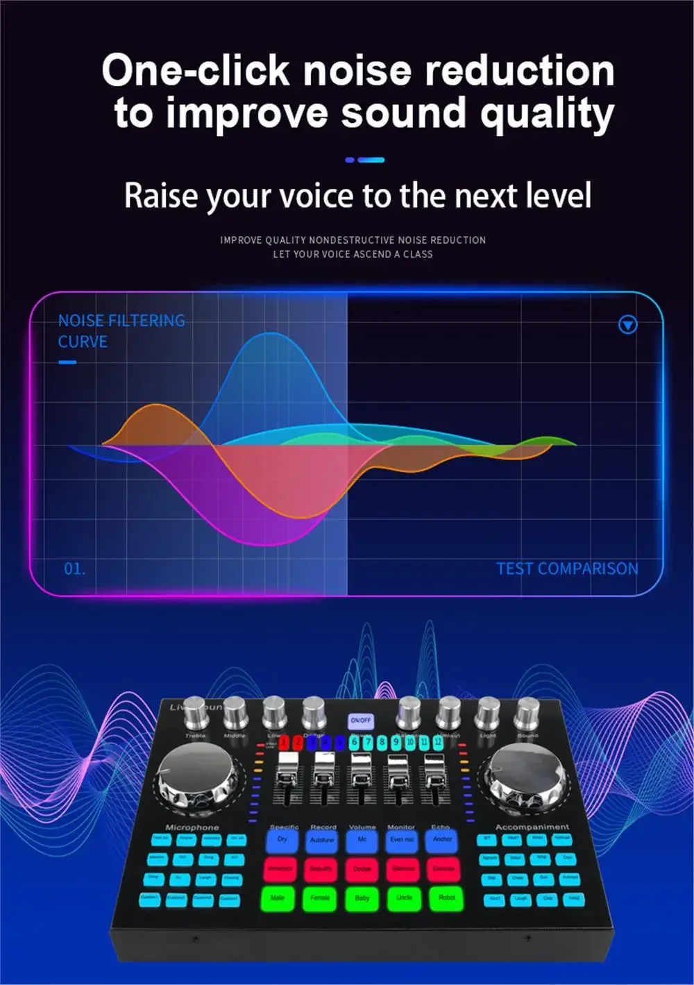 4. Redução de ruído: redução de ruído com um clique para melhorar a qualidade do som, levante sua voz para outro nível.