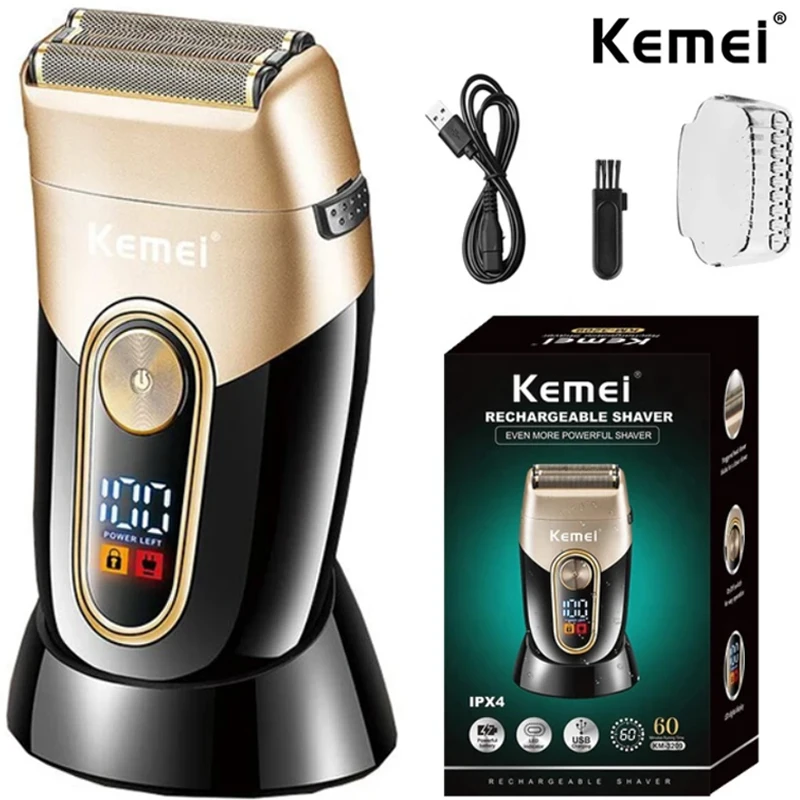 Kemei barbeador elétrico para homens, recarregável por usb, aparador de barba, à prova d'água, barbeiro alternativo, aparador de precisão, lâmina dupla