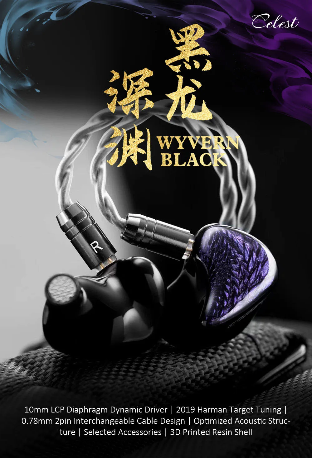 - > Kinera celest wyvern preto no ouvido fones de ouvido de alta fidelidade monitor 10mm lcp unidade dinâmica música jogos fones de ouvido 3.5mm tipo-c relâmpagomic