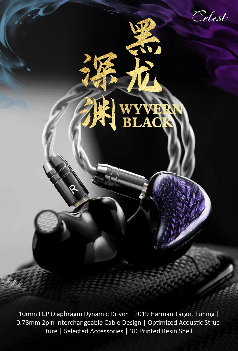 - > Kinera Celest Wyvern / Wyvern PRO / Wyvern Preto 1DD Fone de ouvido intra-auricular Driver dinâmico 0,78 mm Fones de ouvido HiFi com fio Microfone para jogos