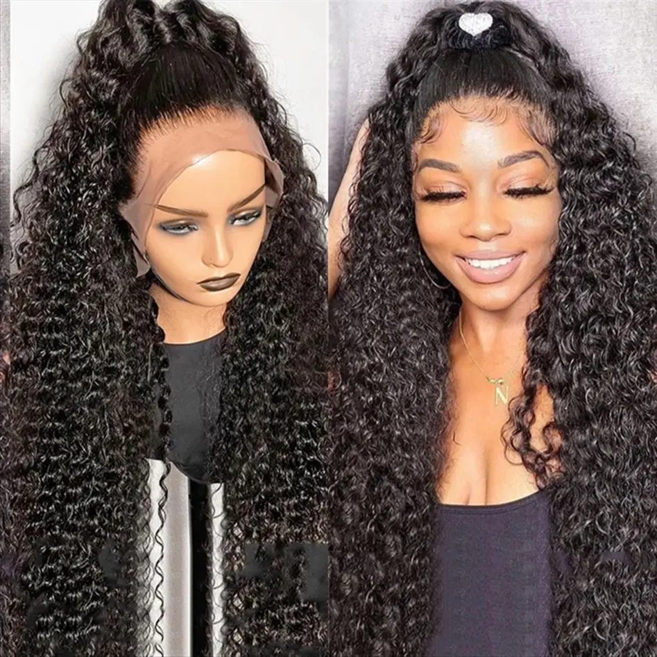 - > Kinky encaracolado perucas 100% perucas de cabelo humano onda profunda brasileira hd laço frontal peruca 13x6 hd frente do laço peruca de cabelo humano para mulher