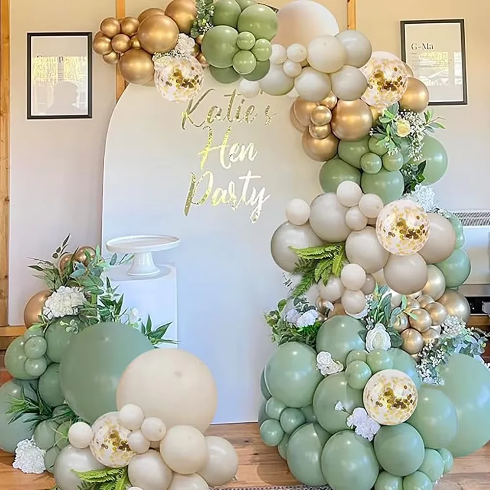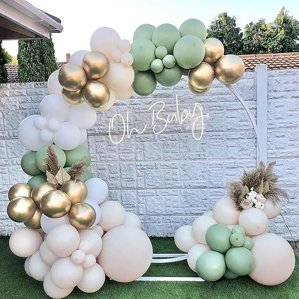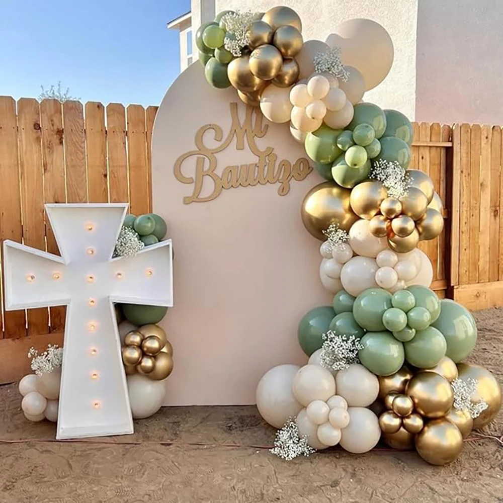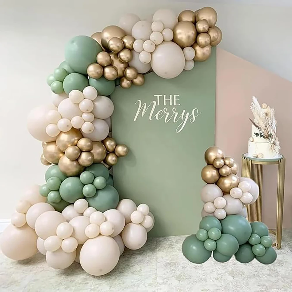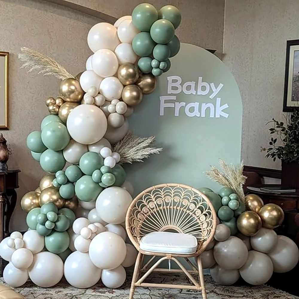 Kit de arco de balão de areia branca, guirlanda de balão dourado verde sálvia, chá de bebê, festa de aniversário, casamento, decoração de formatura
