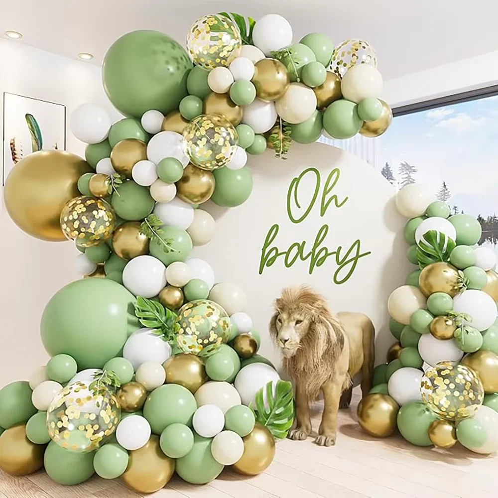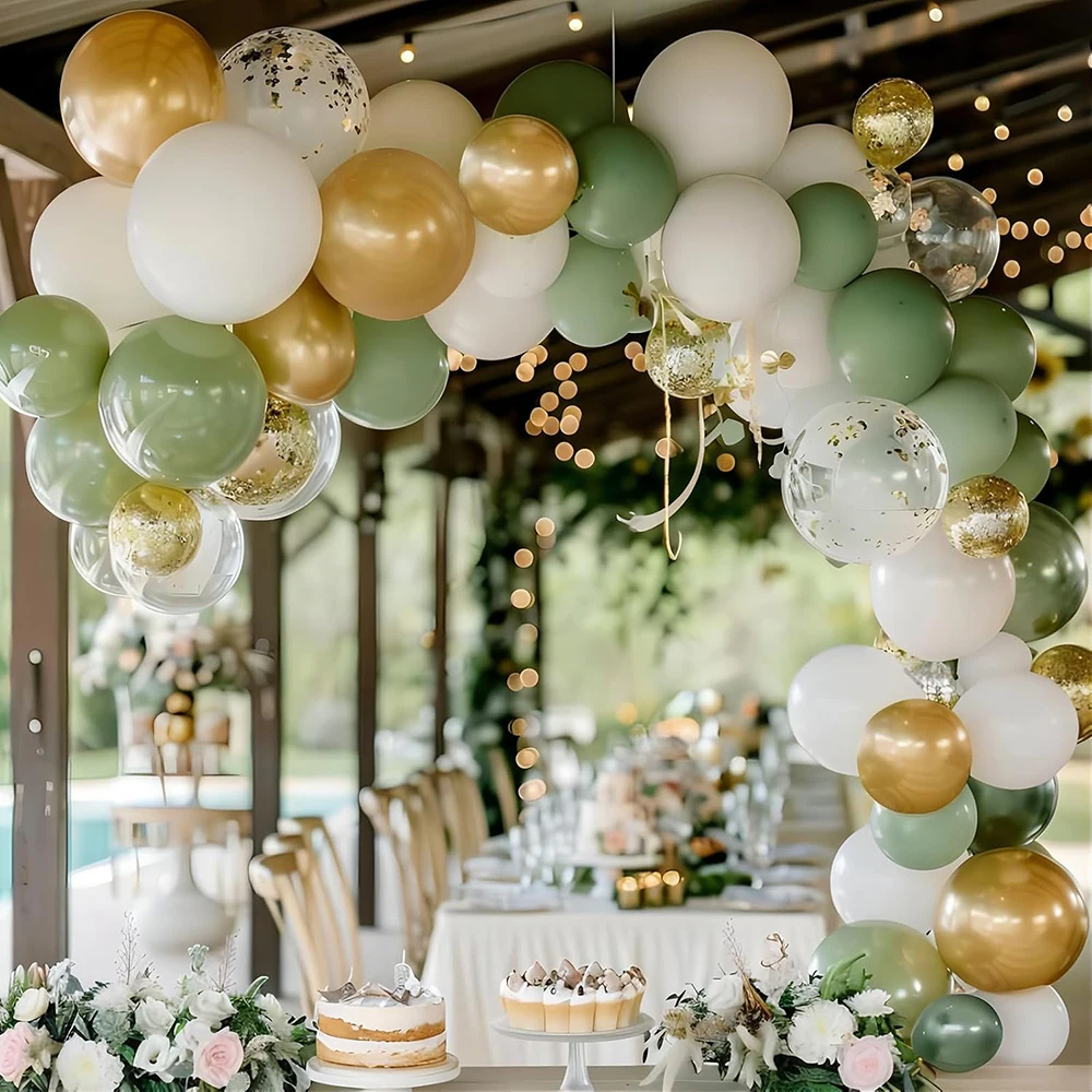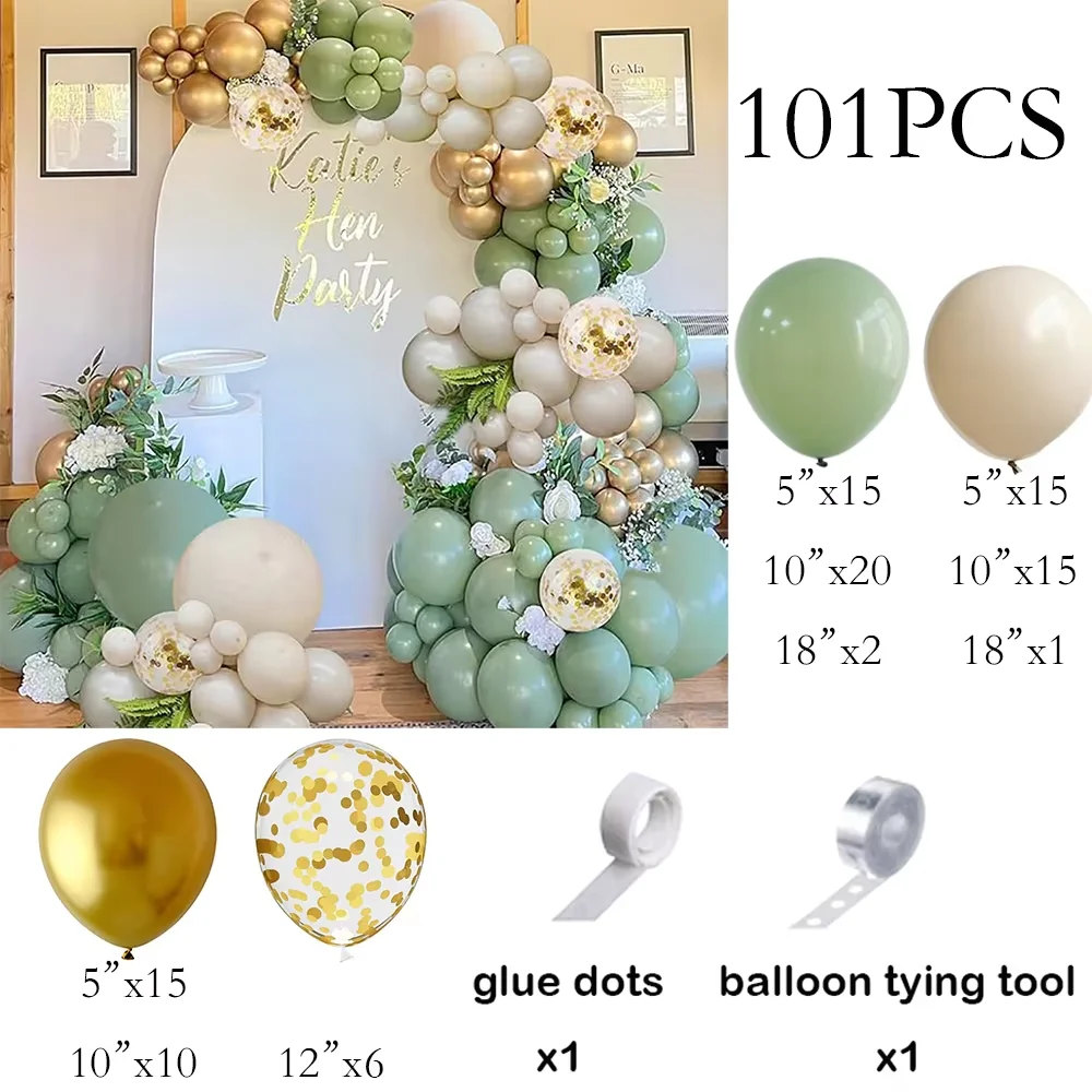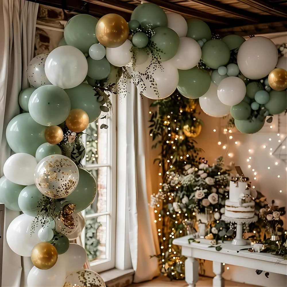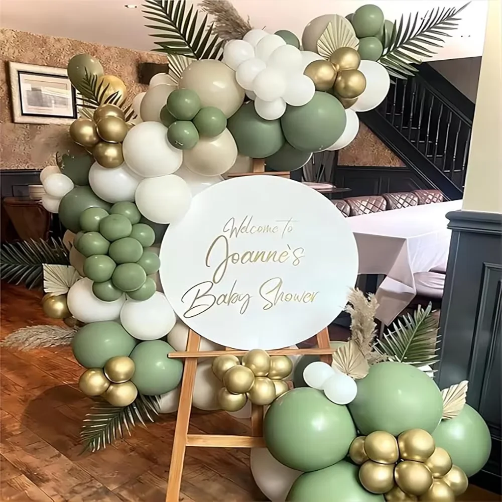 Kit de arco de balão de areia branca, guirlanda de balão dourado verde sálvia, chá de bebê, festa de aniversário, casamento, decoração de formatura