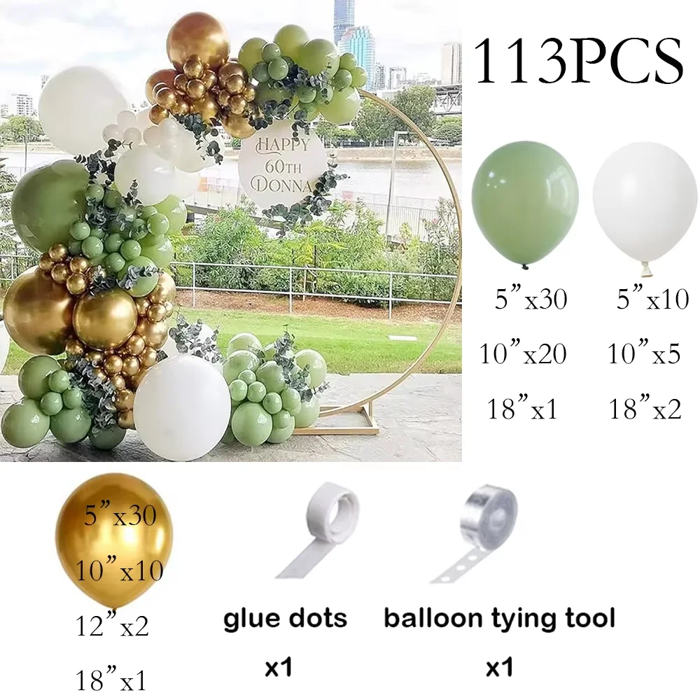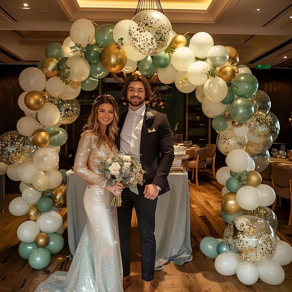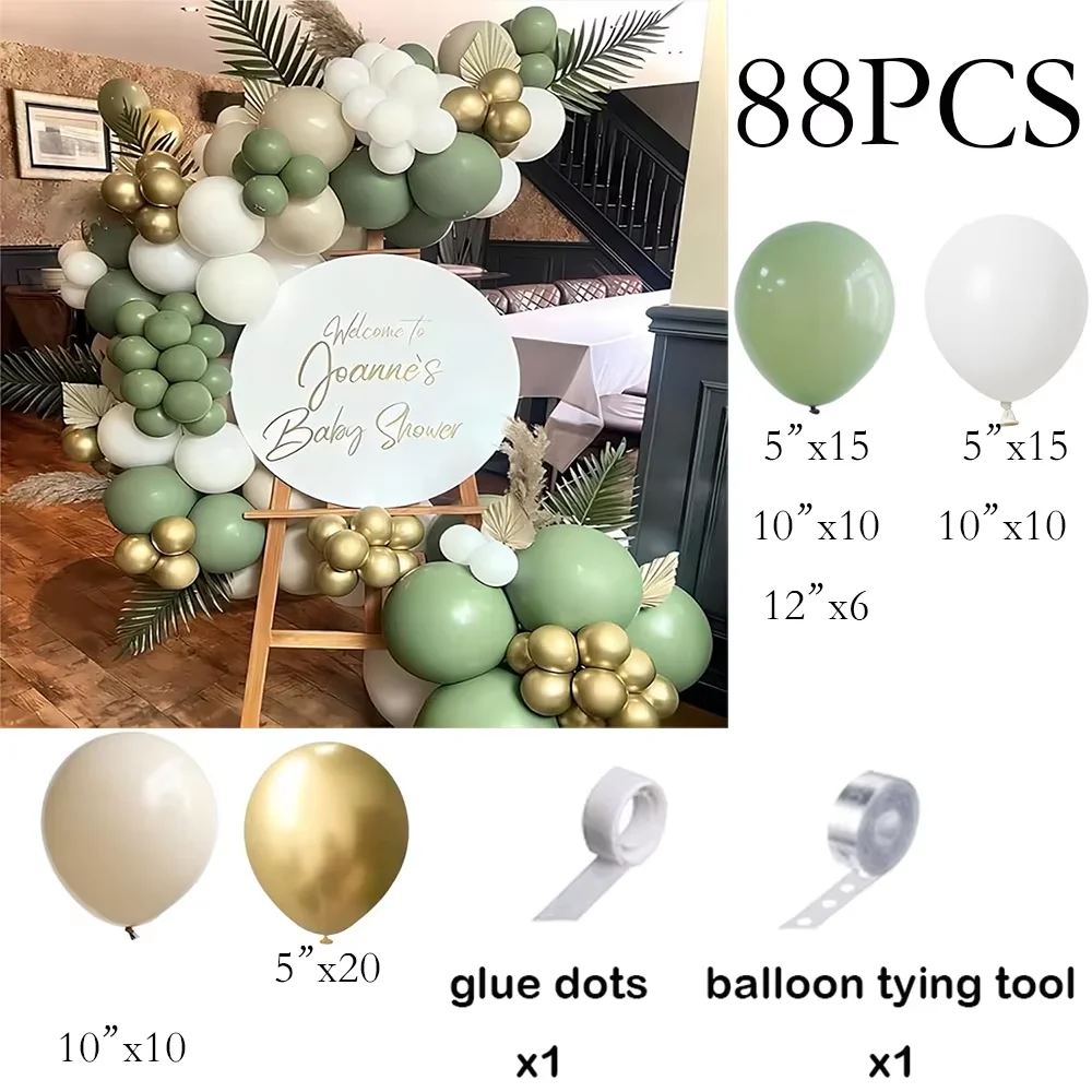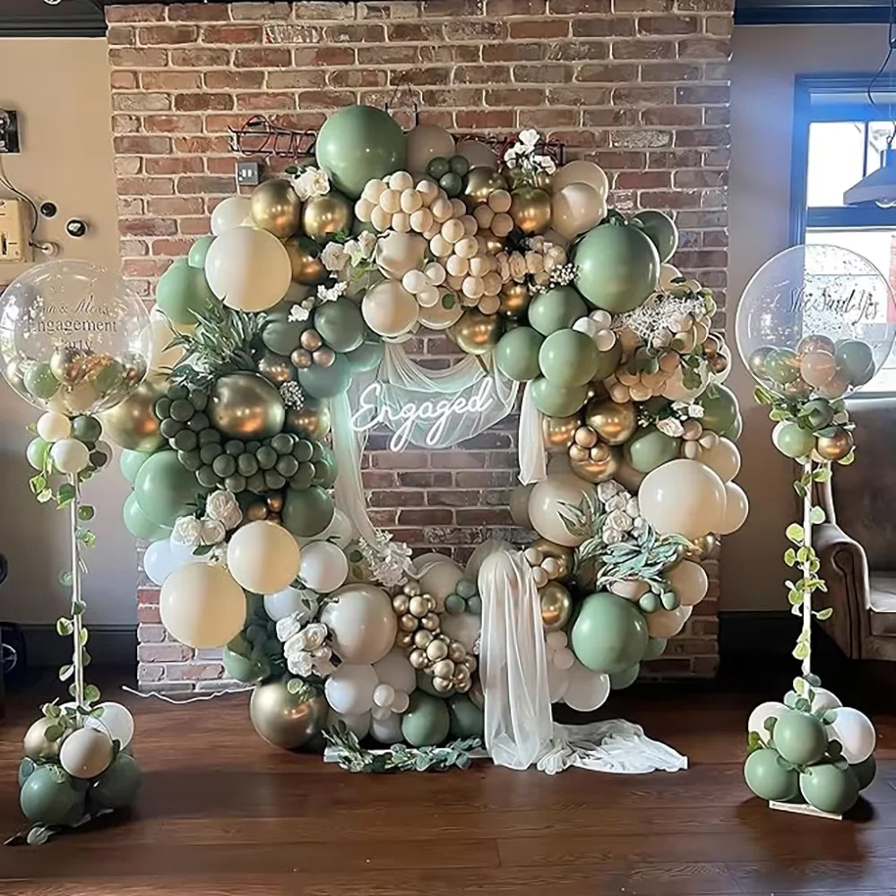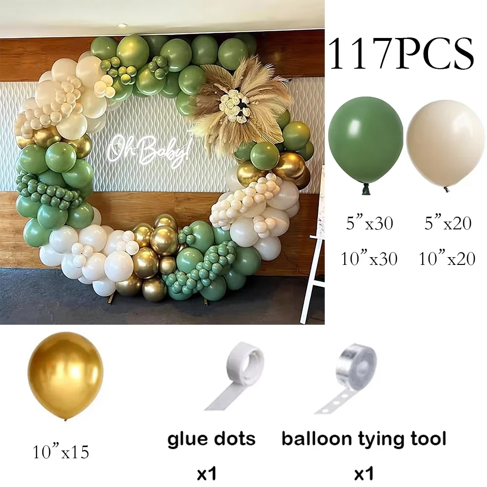Kit de arco de balão de areia branca, guirlanda de balão dourado verde sálvia, chá de bebê, festa de aniversário, casamento, decoração de formatura