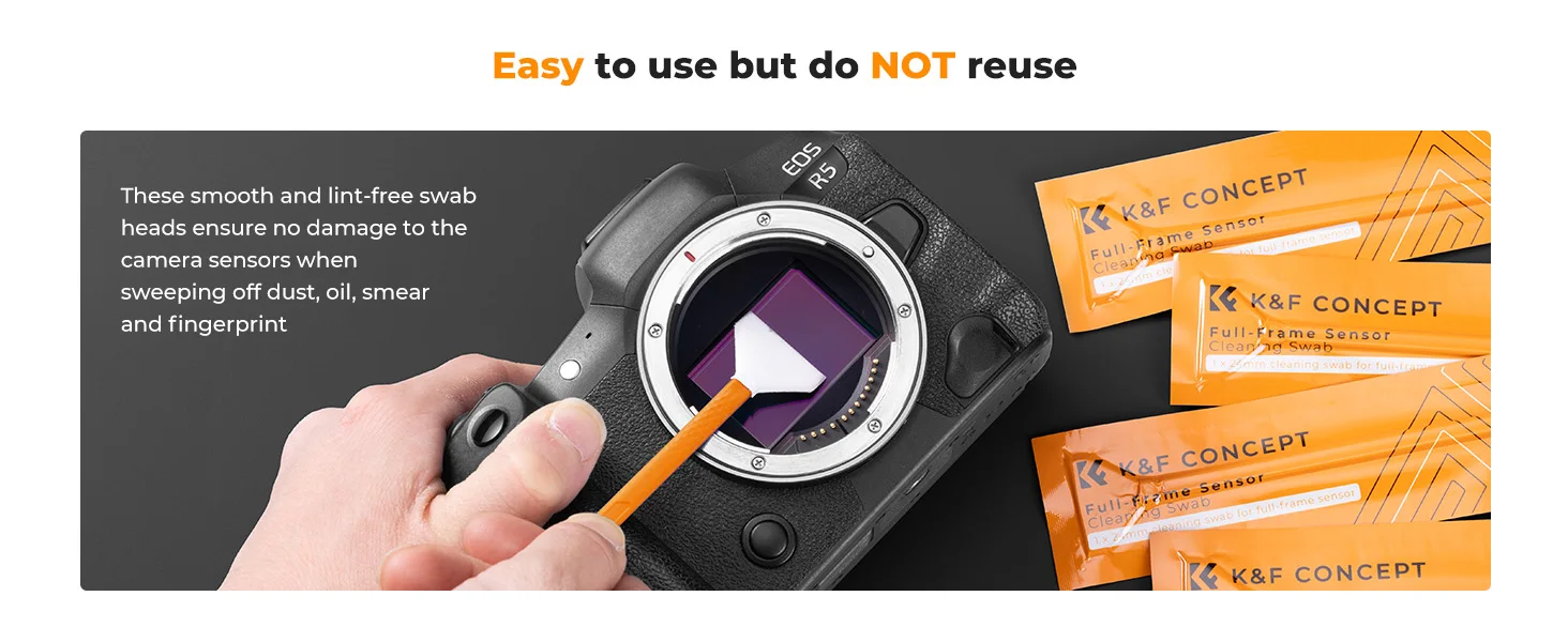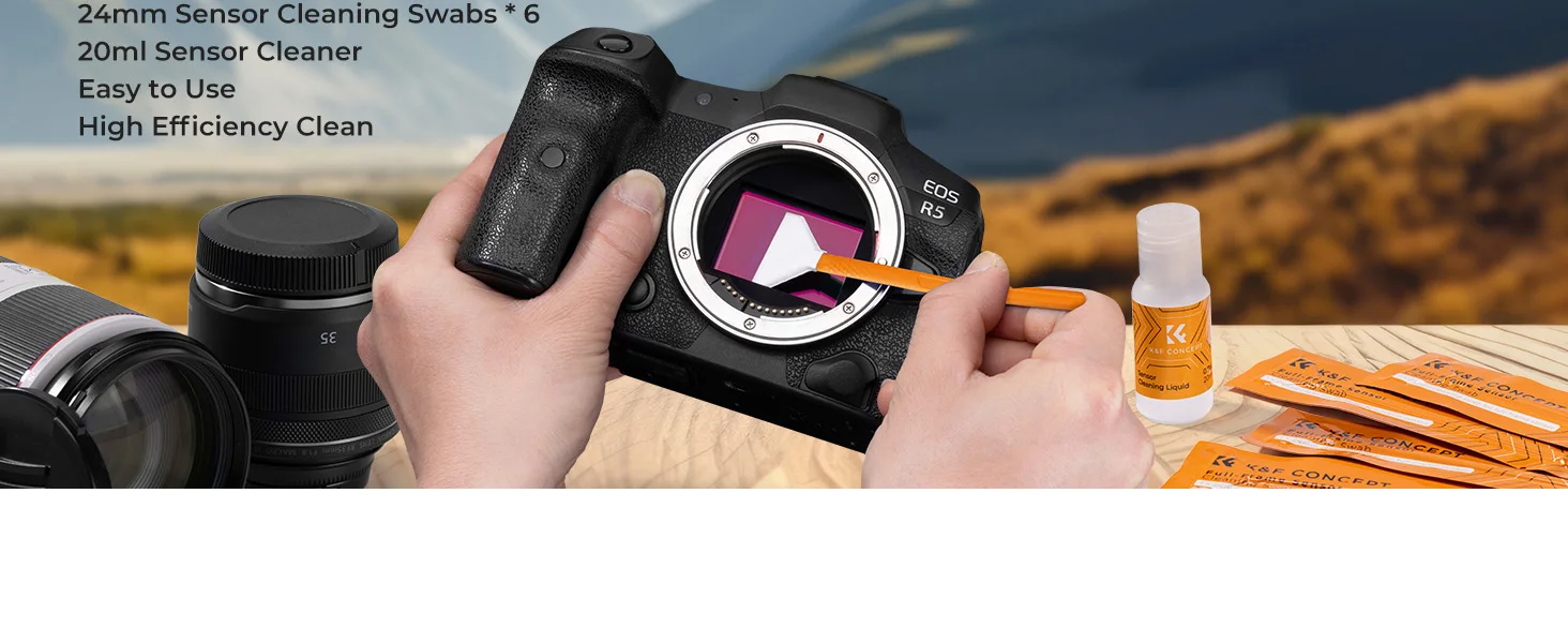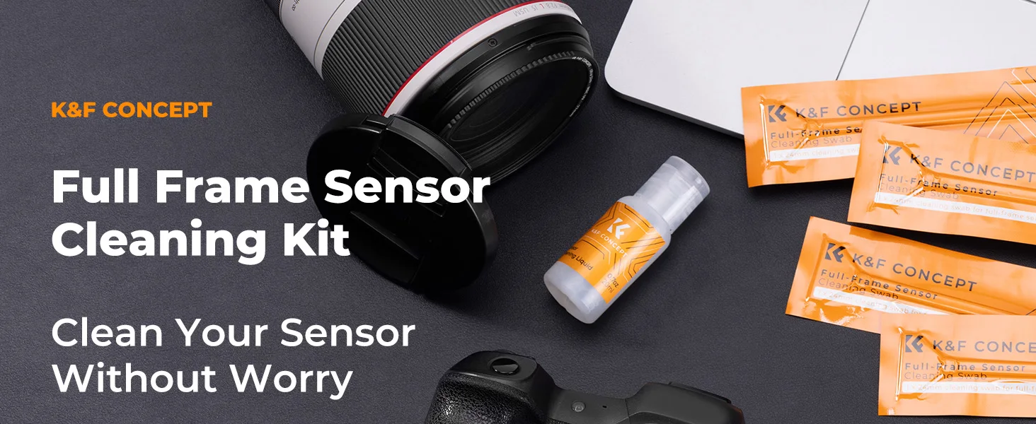 Kit de Limpeza de Sensor K&F CONCEPT 24mm Full Frame/16mm APS-C com 6 Swabs e Líquido de Limpeza de 20ml para Câmeras Digitais DSLR SLR Sony
