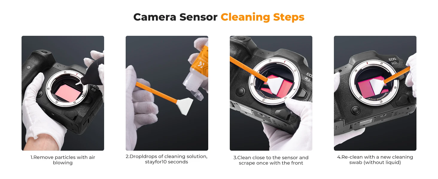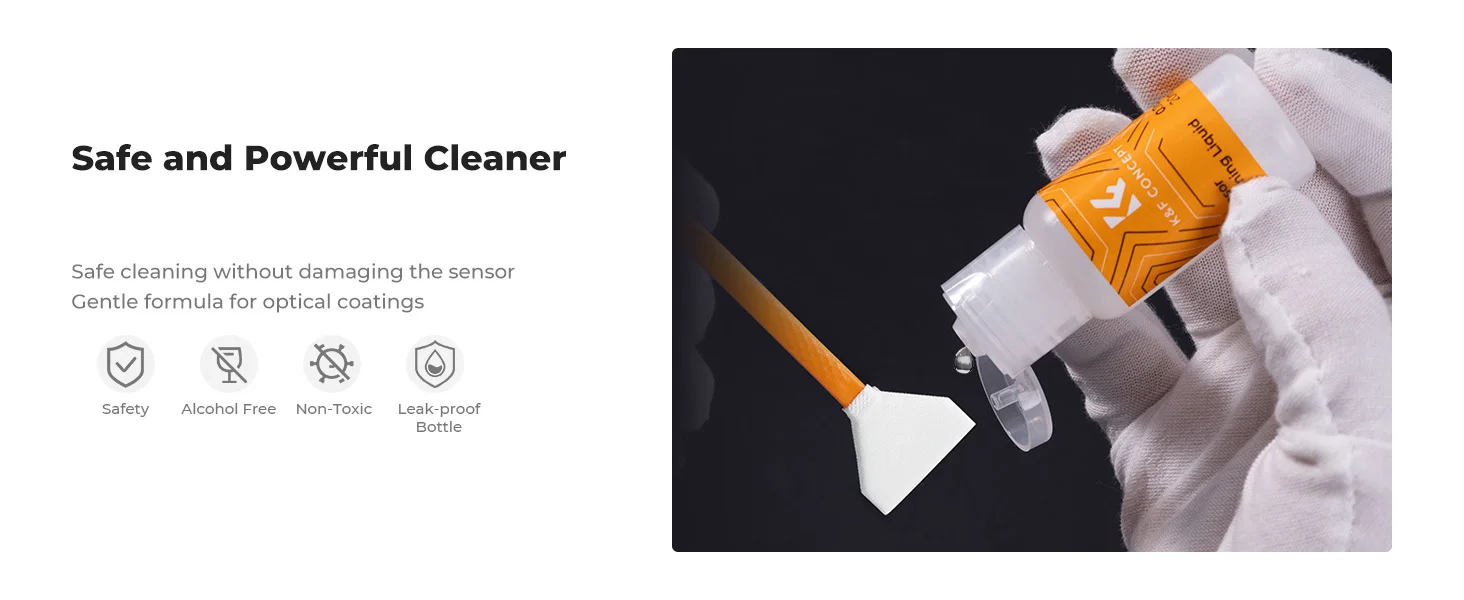 📸【Líquido de limpeza suave】Incolorido e não irritante, adequado para o sensor e limpeza de câmeras SLR; Especialmente formulado para proteger e limpar todos os tipos de lentes.Sem amônia, livre de tóxicos e baixo VOC.