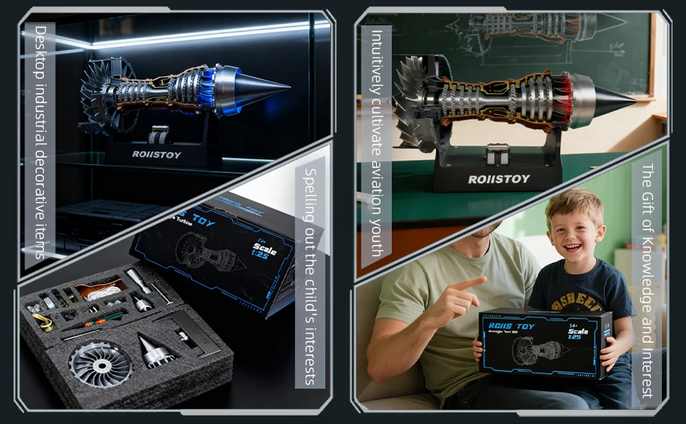 - > Kit de modelo de motor turbojet, simulação de chama traseira de velocidade ajustável para montagem DIY e projetos científicos