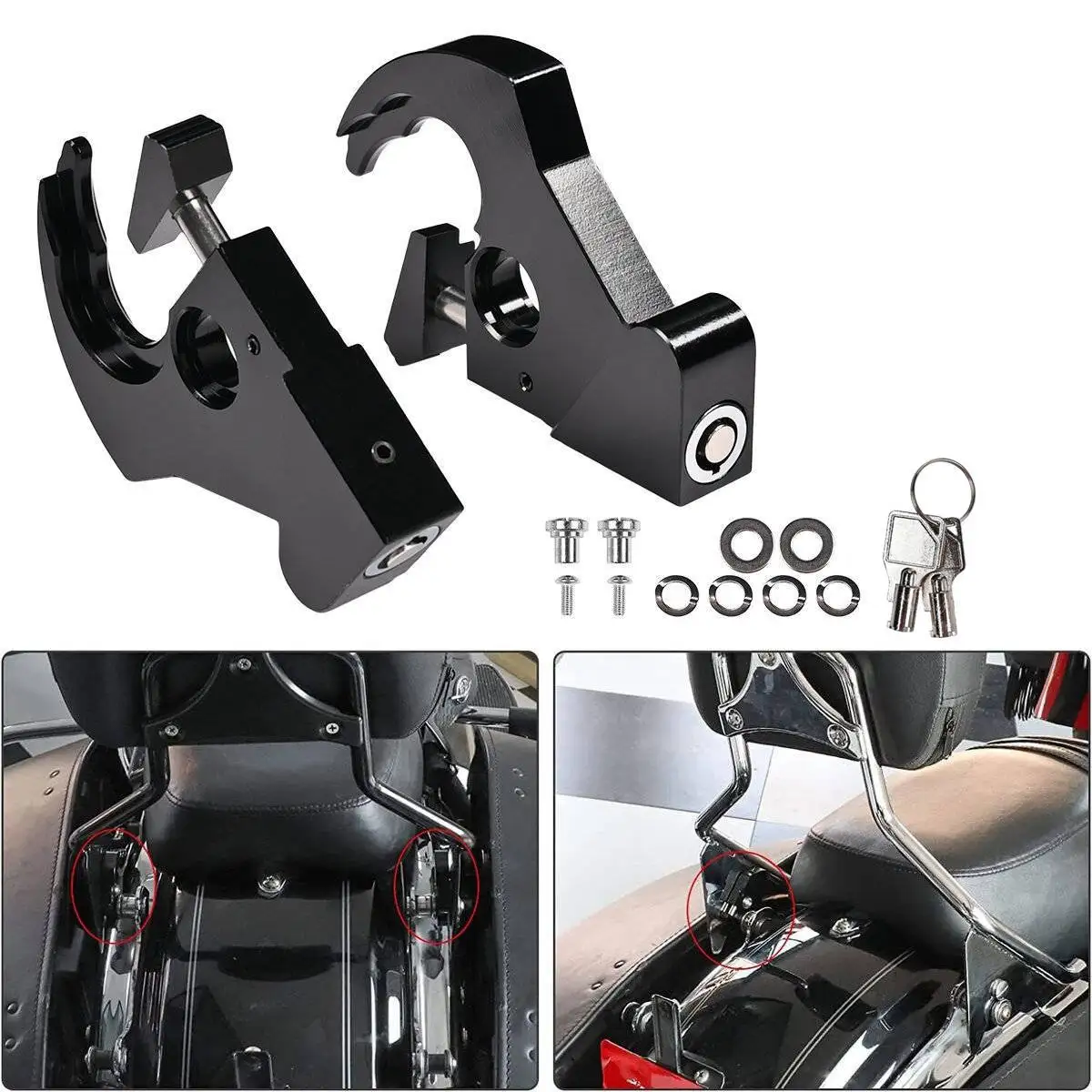 Compatible 1984-2024 for Touring, for Softail, for Sportster, for Dyna Detachable Sissy Bar Backrest, Luggage Rack; Fits all models equipped with detachable Sideplates, One-Piece Sissy Bar Uprights, Racks and Luggage Mounting Racks.