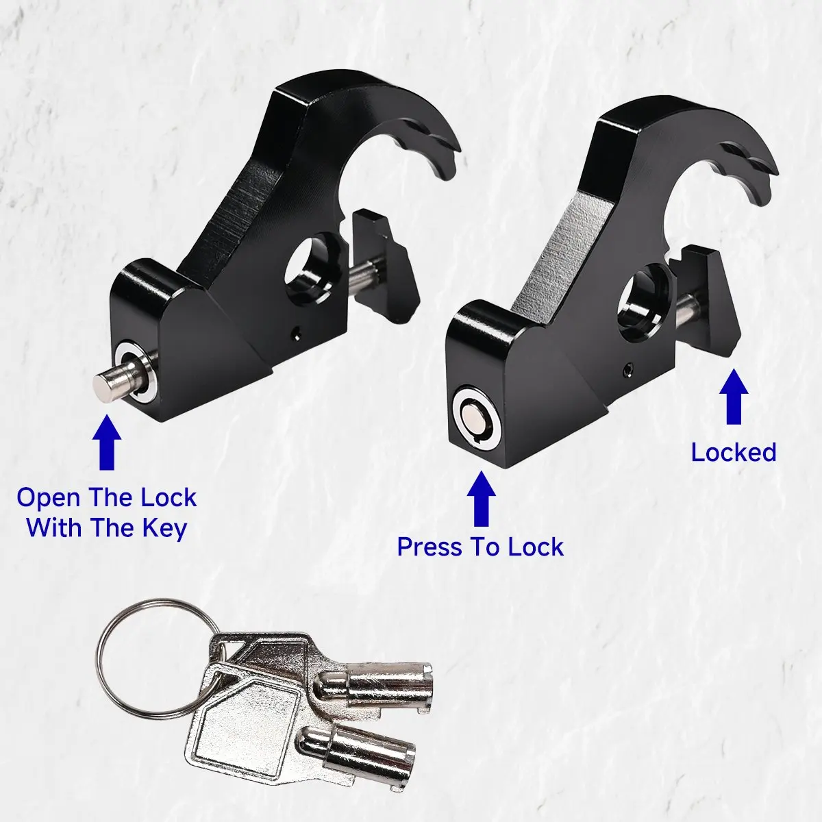 Luggage rack docking latch clip with keys has an anti-theft feature that provides additional security and peace of mind when parking.