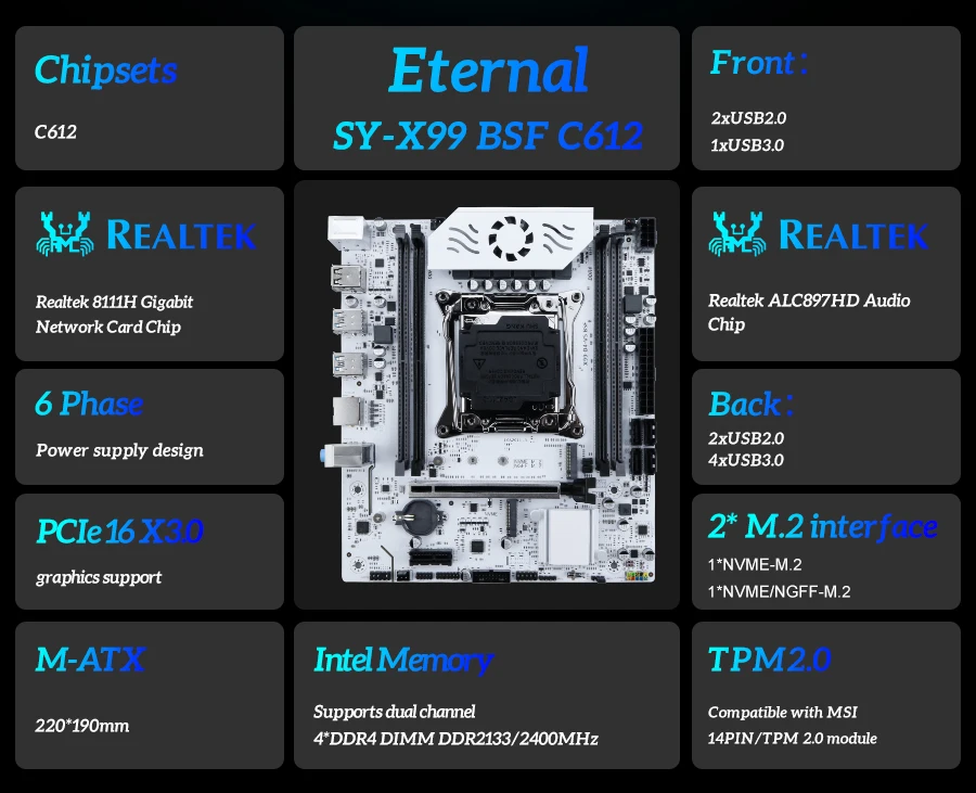 - > Kit de Placa-Mãe Gamer X99 SOYO C612 com CPU Intel Xeon E5 2680 V4 DDR4, Componentes de Computador Xeon, Placa Principal TPM