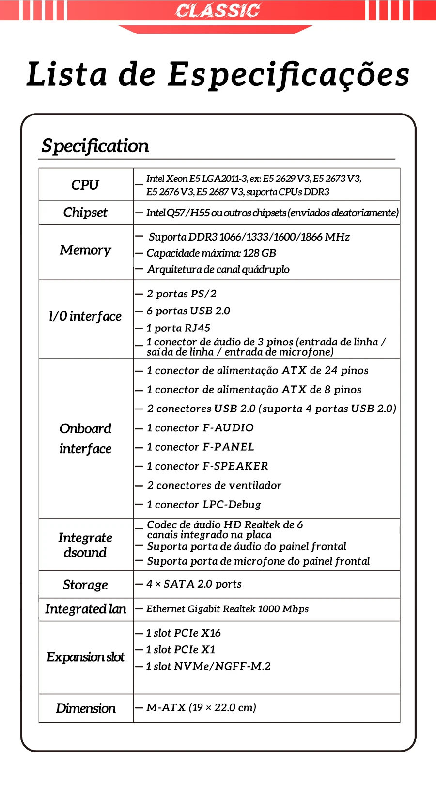Placa-mãe+CPU+RAM: 1*SY-X99 DDR3+1*CPU E5 2676 V3+1*DDR3 8G