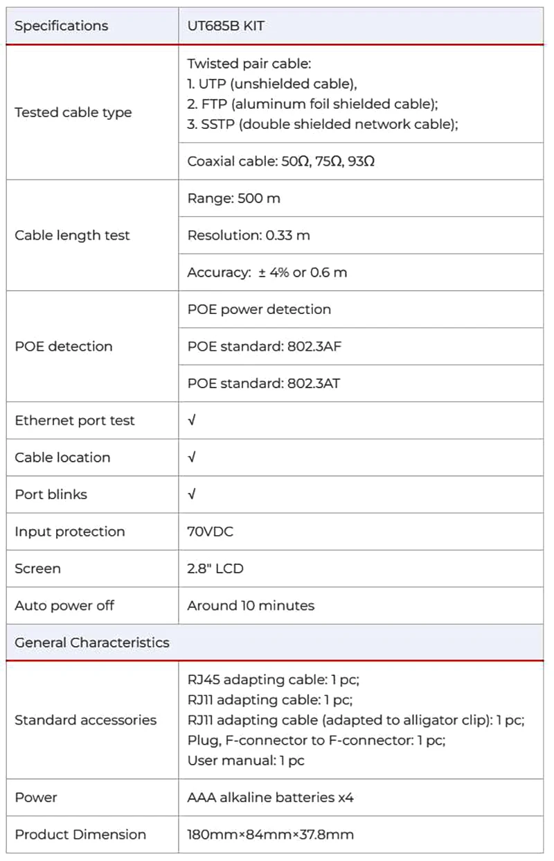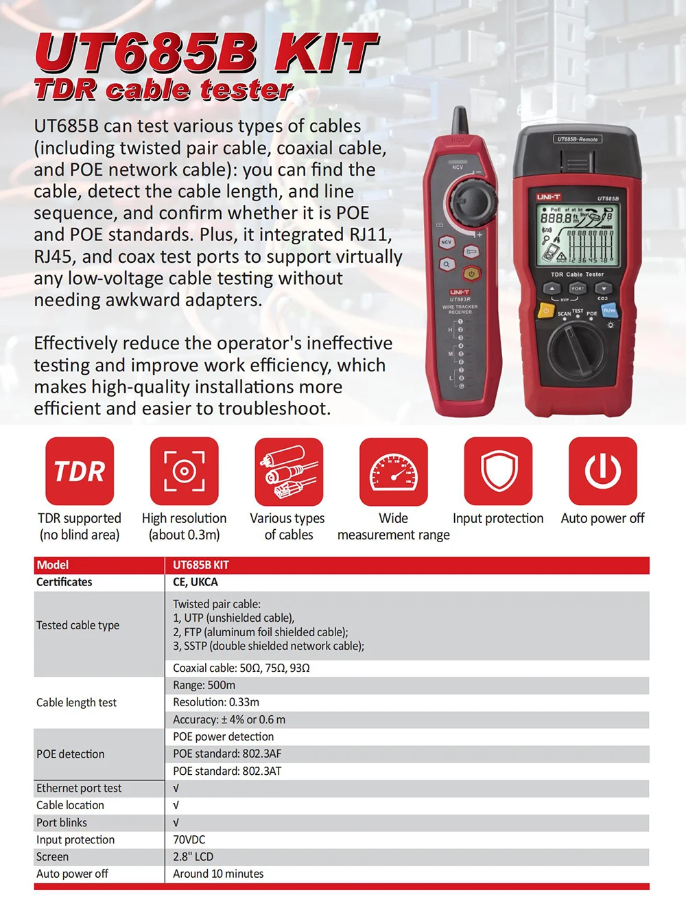 - > Kit UNI-T ut685b tdr testador de cabo poe localizador de linha de rede coaxial par trançado localizador comprimento sequência detector fio rastreador