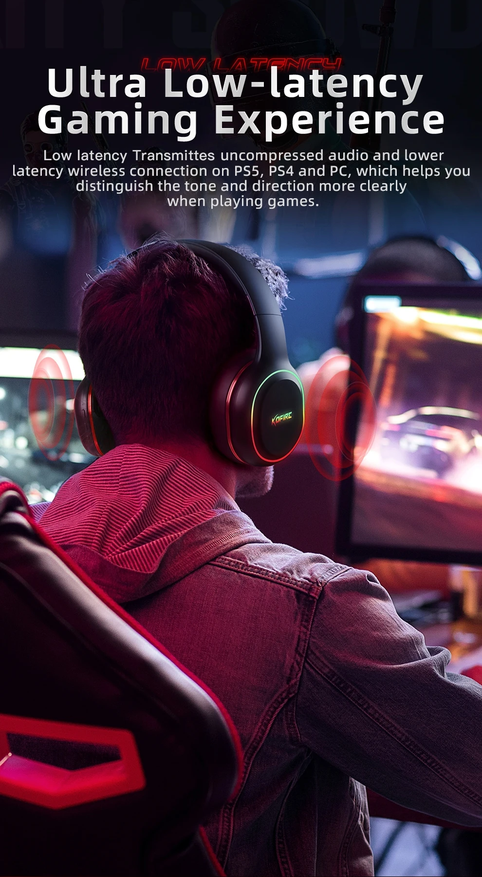 1. Latência ultrabaixa dentro de 25-40 milissegundos, fone de ouvido profissional para jogos.