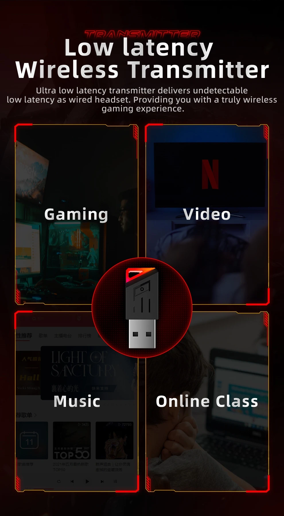 O transmissor sem fio de latência ultrabaixa oferece baixa latência indetectável semelhante a um fone de ouvido com fio, proporcionando uma experiência de jogo verdadeiramente sem fio.Desfrute de jogos contínuos e liberdade ilimitada com esta tecnologia de ponta.