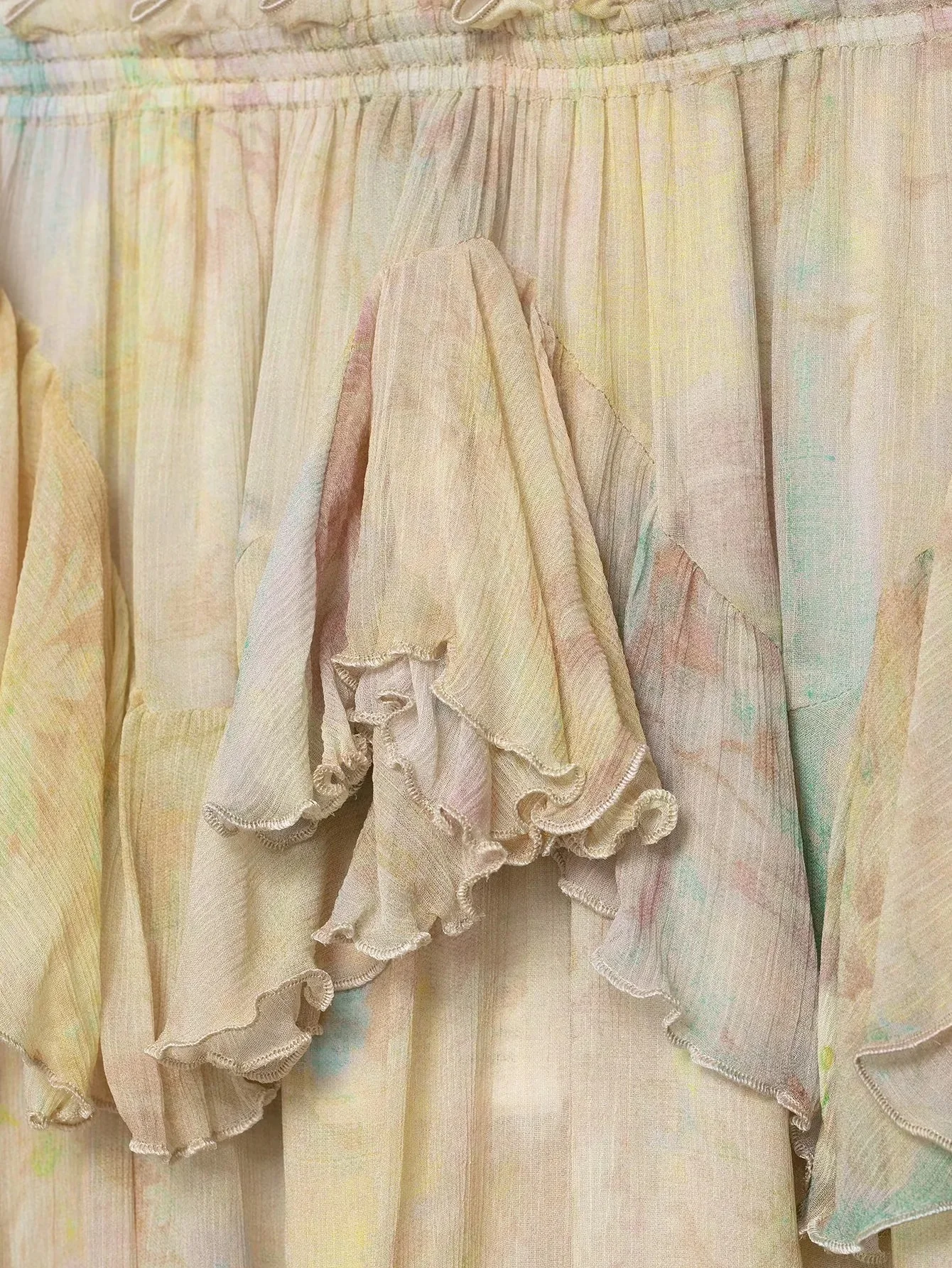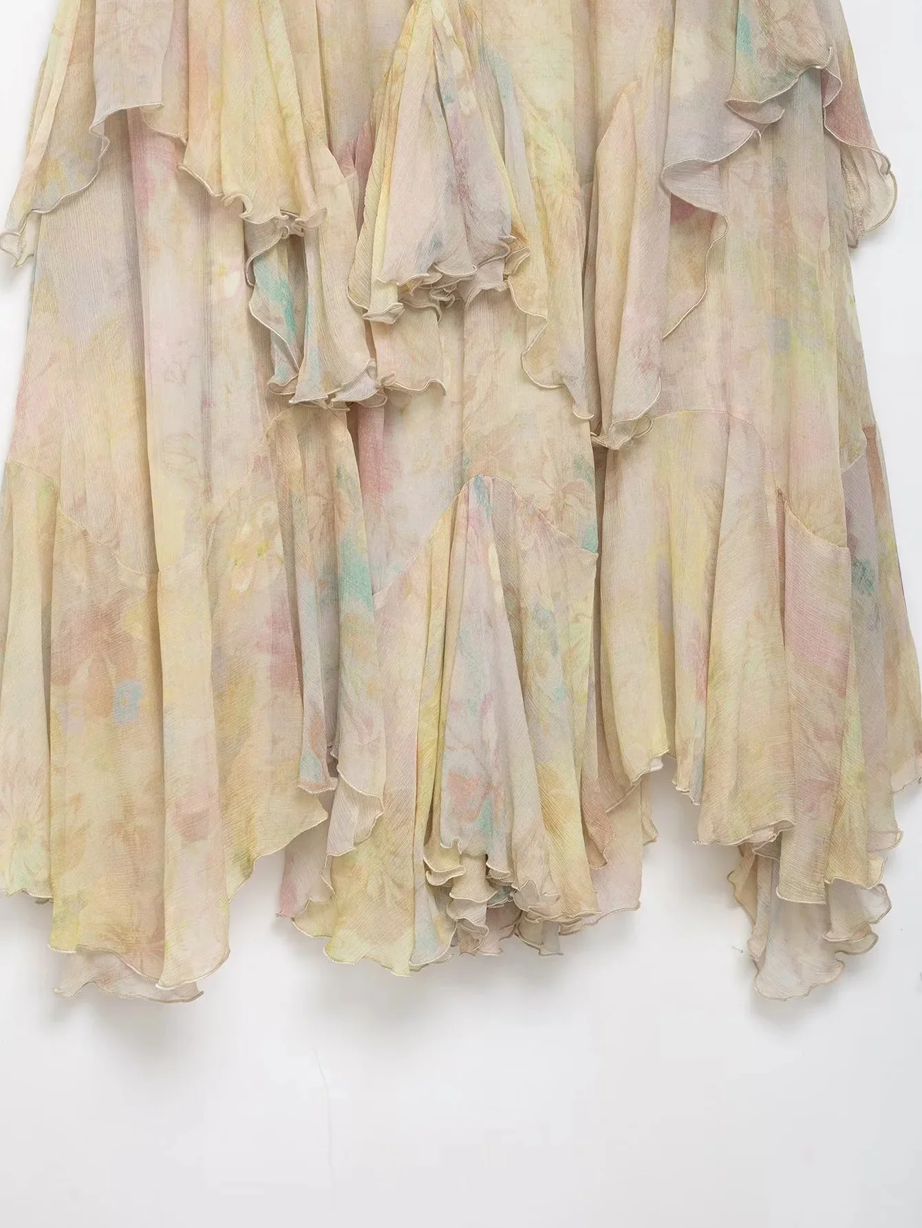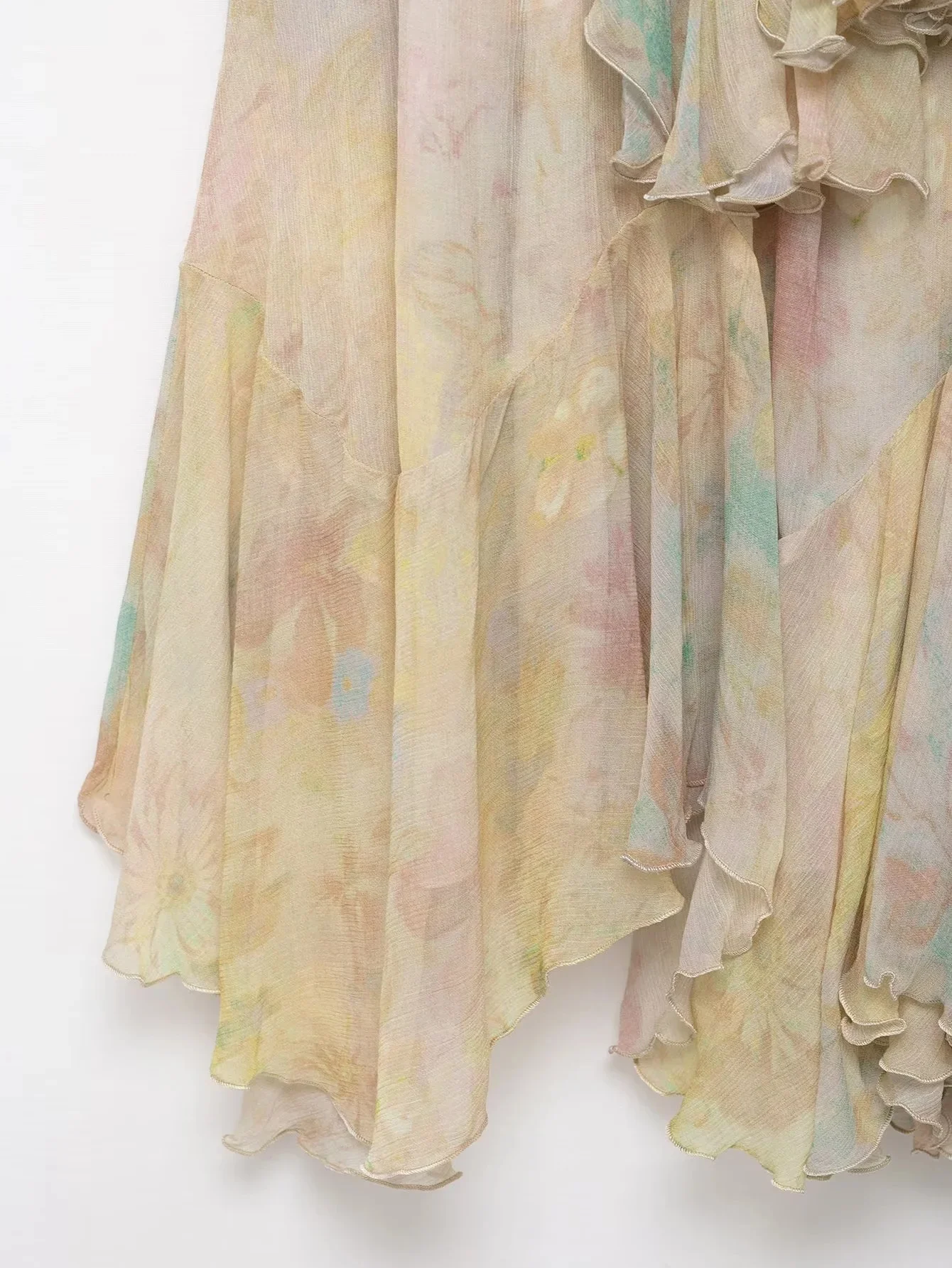 Kondala vintage flor impressão saias longas cintura alta babados chiffon saias moda 2025 outono boho saias de festa de férias