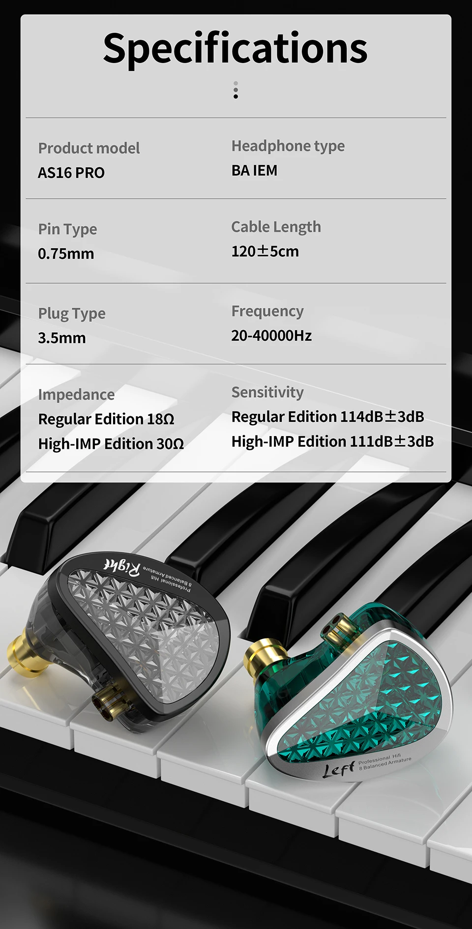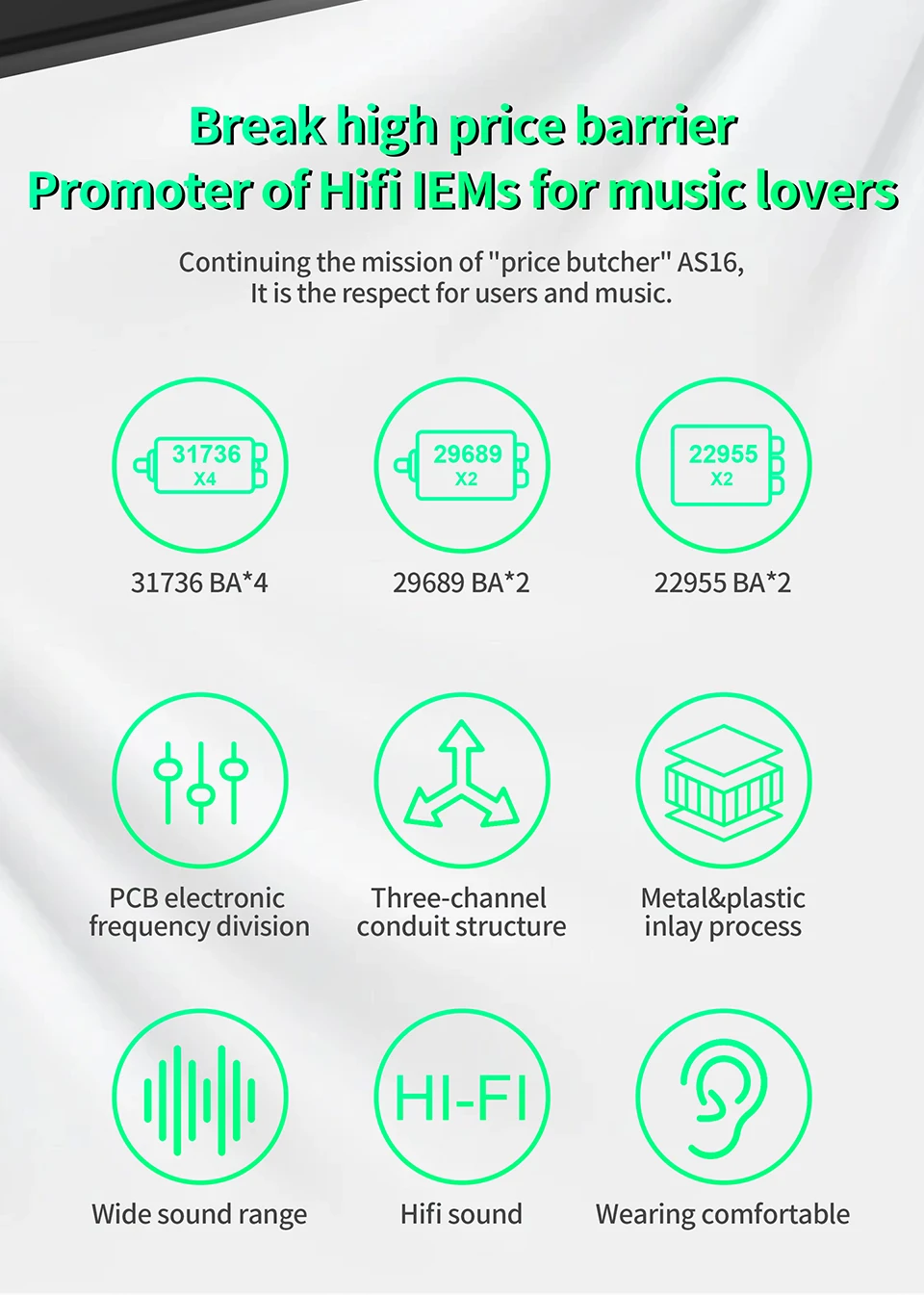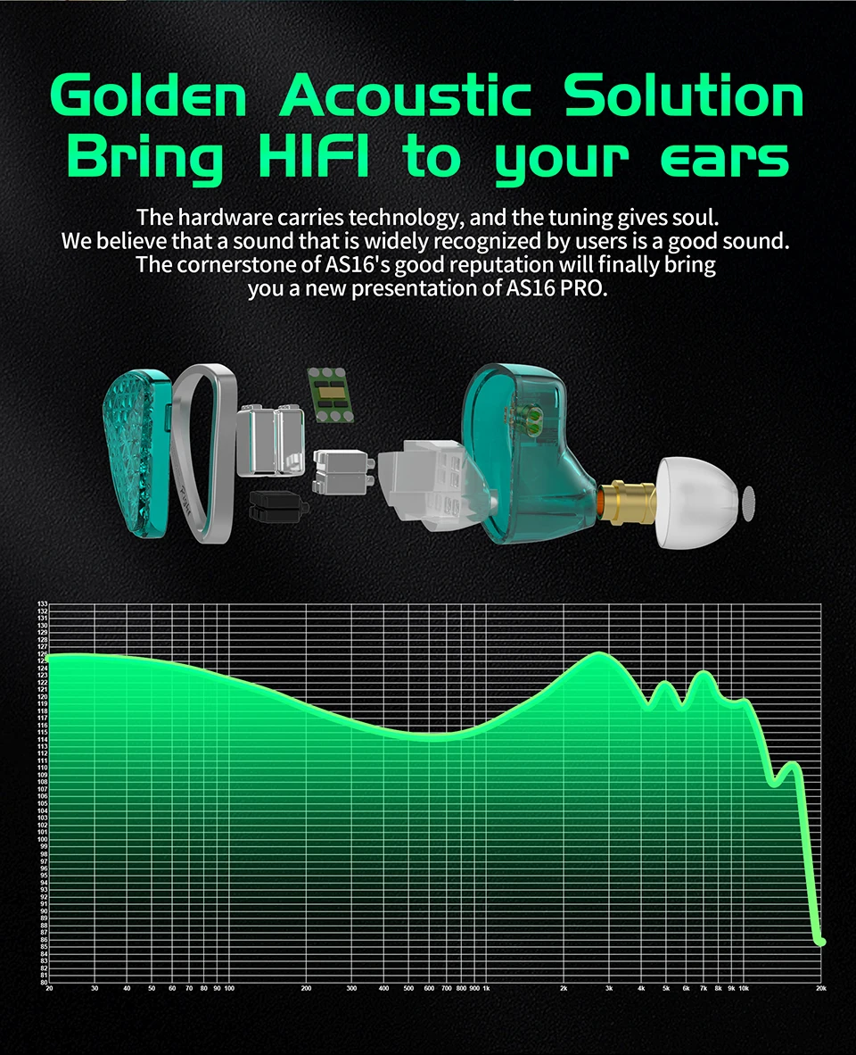 Diferente dos fones de ouvido convencionais, o AS16 PRO possui uma unidade de baixa frequência integrada composta por two22955 BA, fornecendo o dobro da saída de energia.