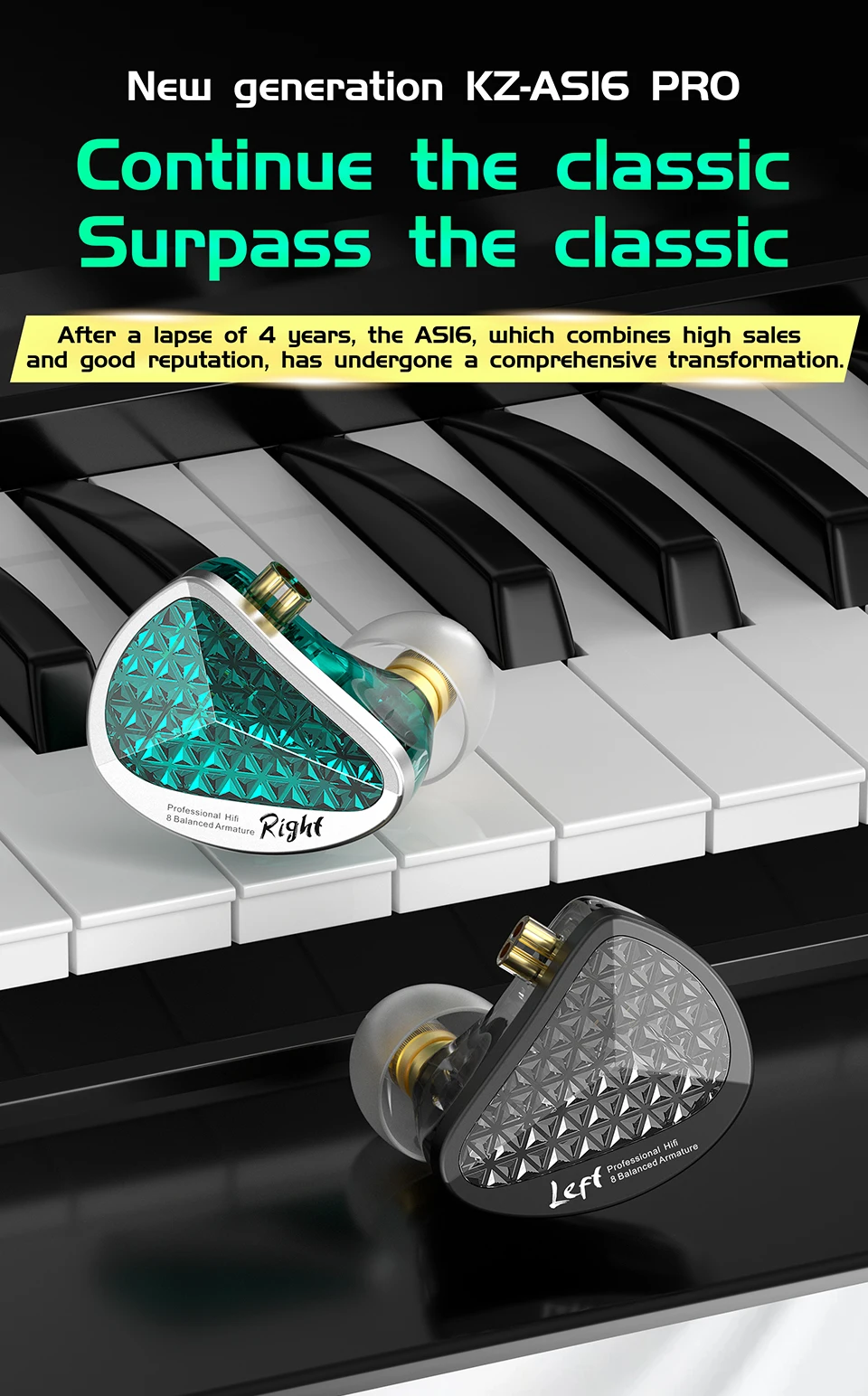 - > KZ-AS16 Pro In Ear Fones De Ouvido, Armadura Equilibrada, HiFi Bass, Fones De Ouvido Do Monitor, Auscultadores Com Cancelamento De Ruído, Esporte Headset, 16BA