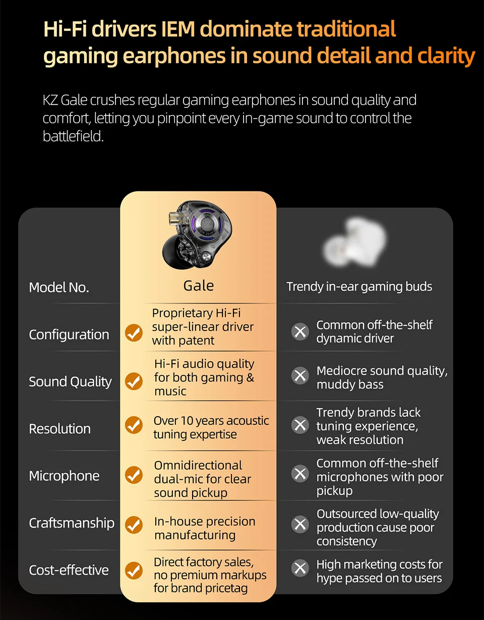 - > KZ Gale Fones de ouvido intra-auriculares para jogos E-sports Bass Metal para videogame Stage Live Sound Headphones