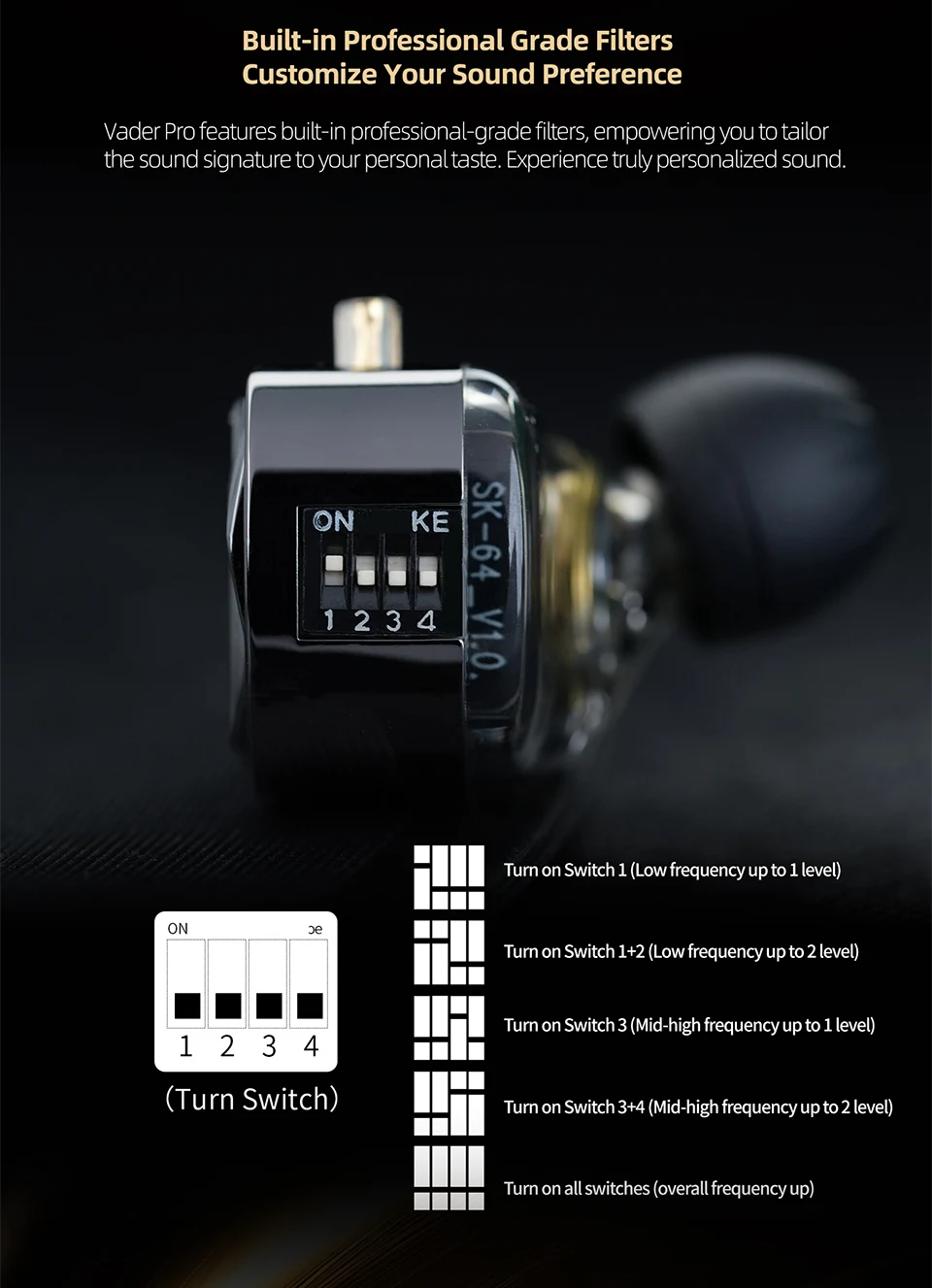 - > Kz vader pro monitor intra-auricular fone de ouvido hifi verdadeiramente balanceado high-end 6 driver dinâmico iem interruptor de ajuste de fone de ouvido