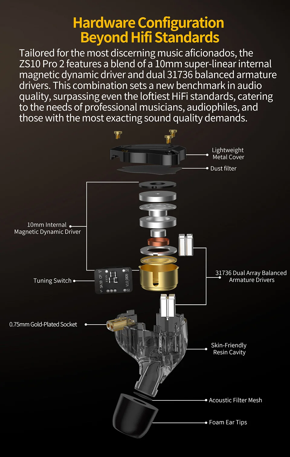 - > KZ ZS10 Pro 2 fone de ouvido de metal de alta fidelidade intra-auricular baixo interruptor de ajuste de 4 níveis monitor esportivo fone de ouvido som redução de ruído