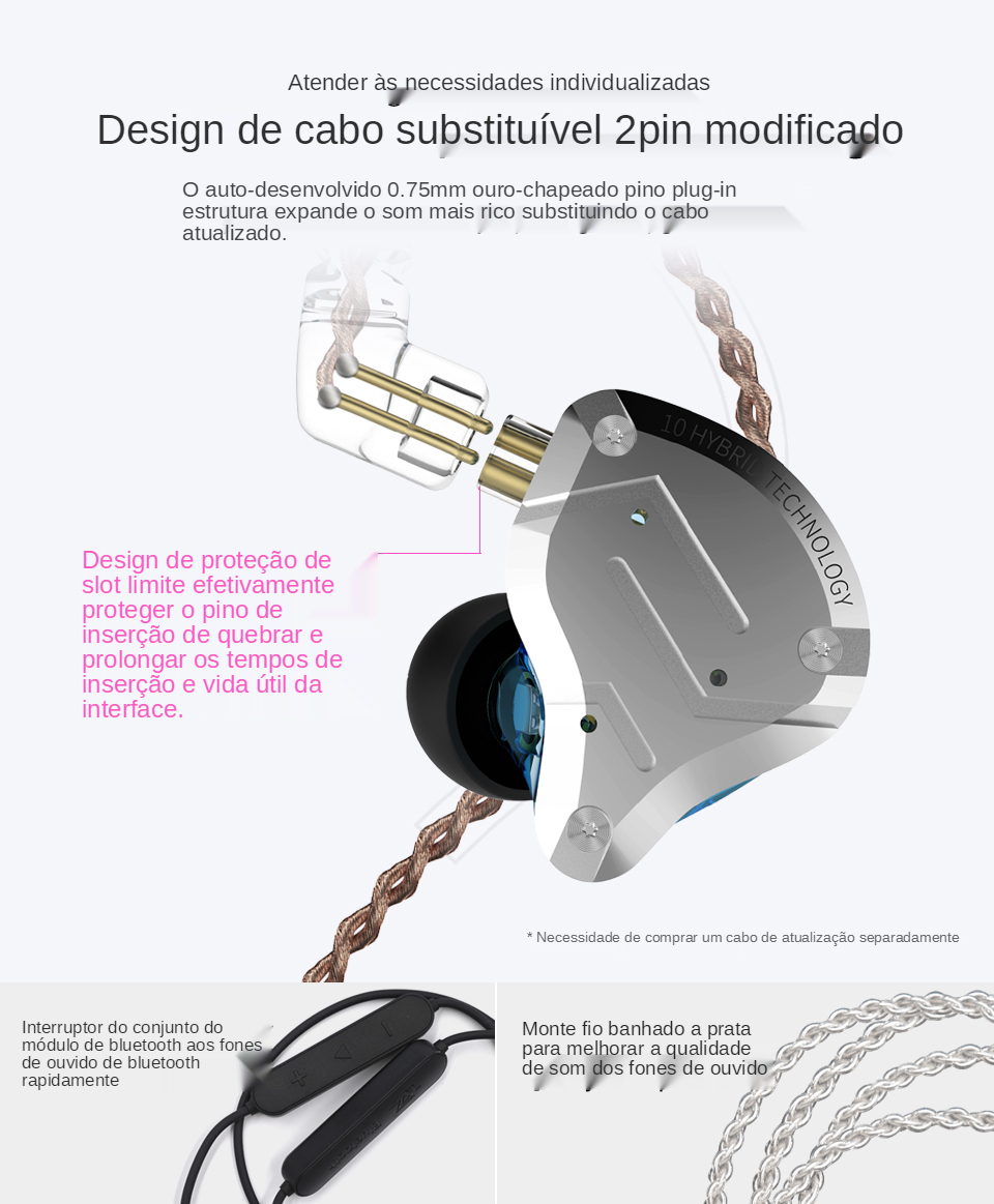 Por favor note: zs10 pro foi substituído por um novo cabo, apenas a aparência é substituída, e o uso normal não é afetado. As versões antigas e novas são enviadas aleatoriamente.