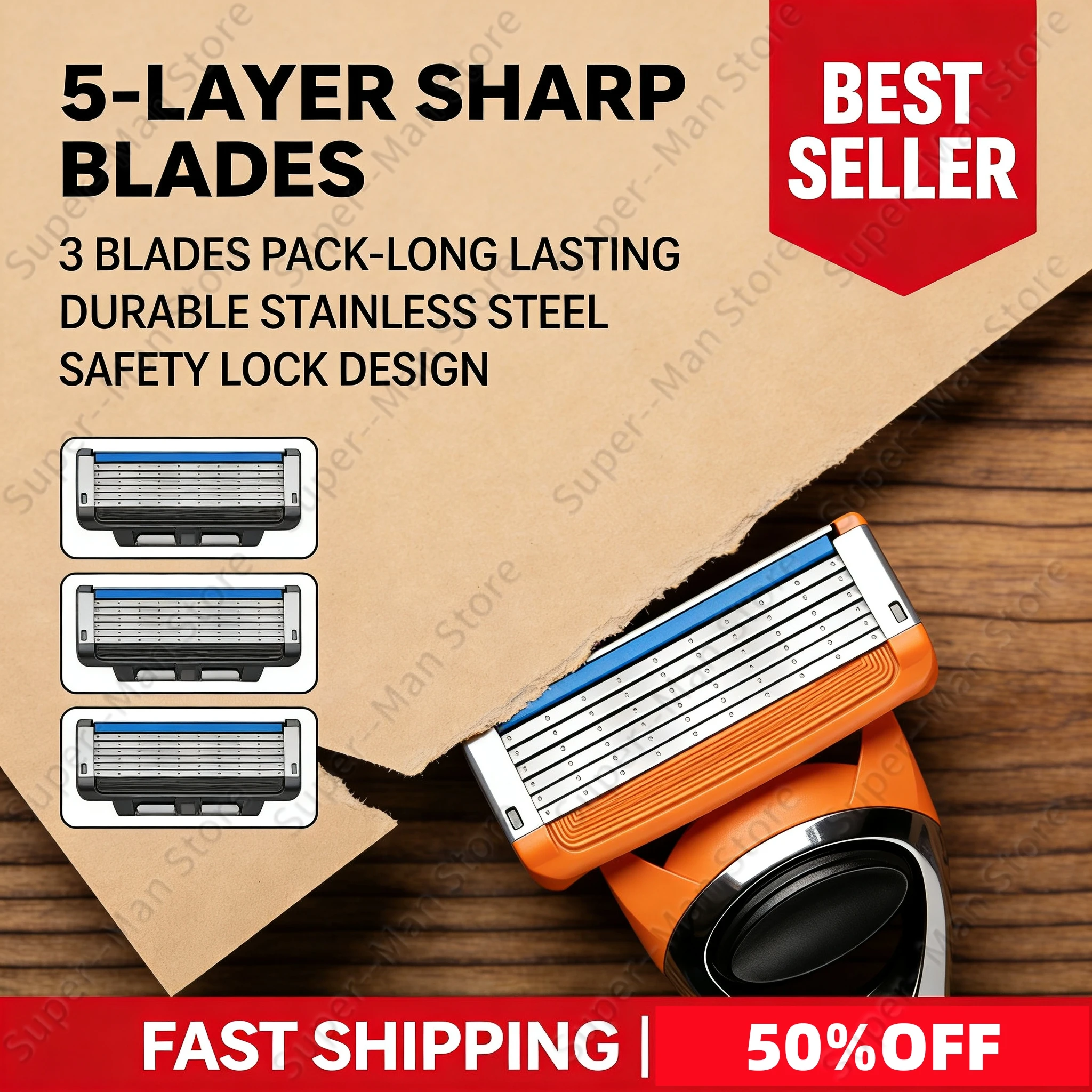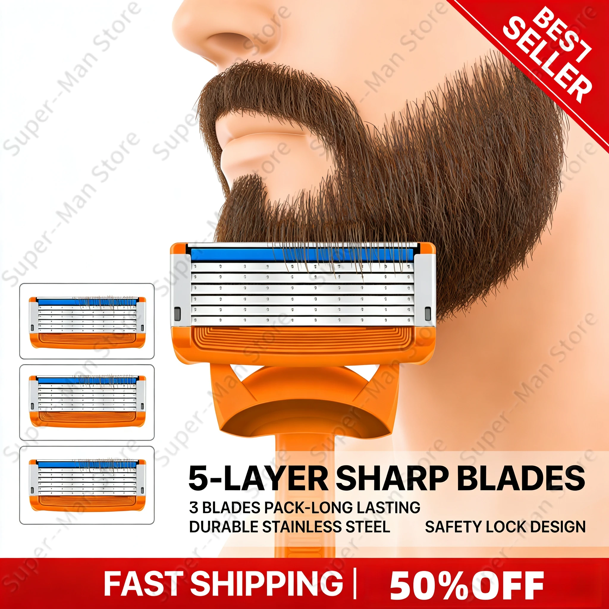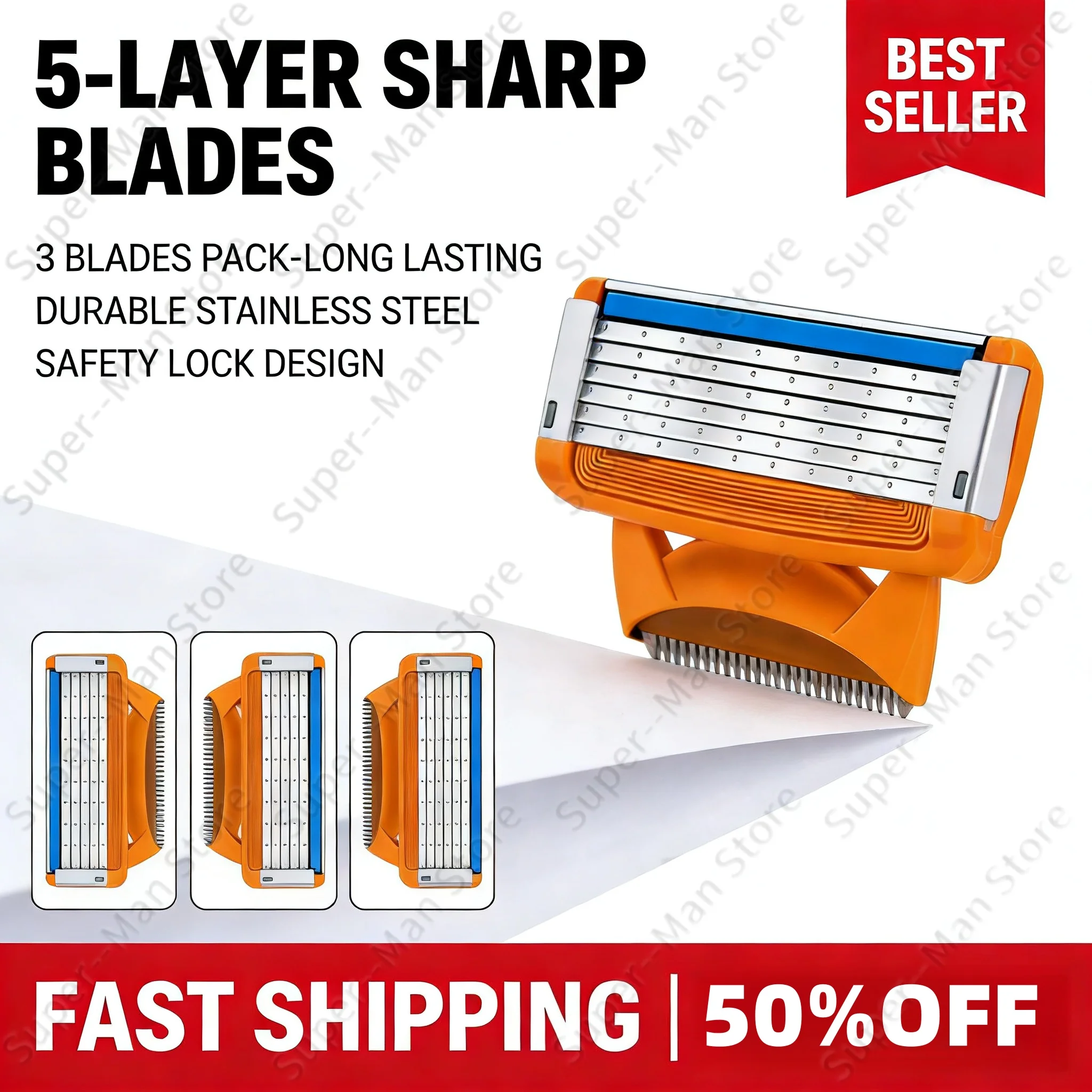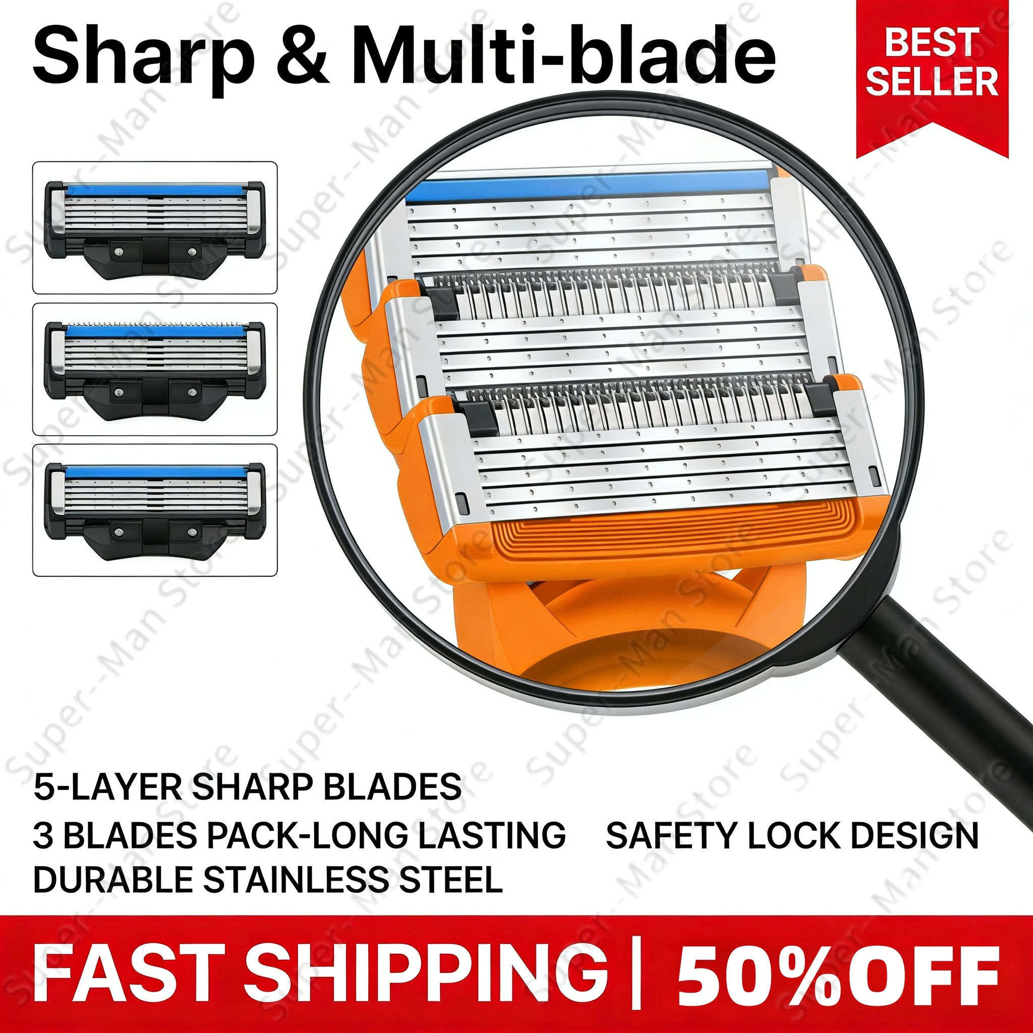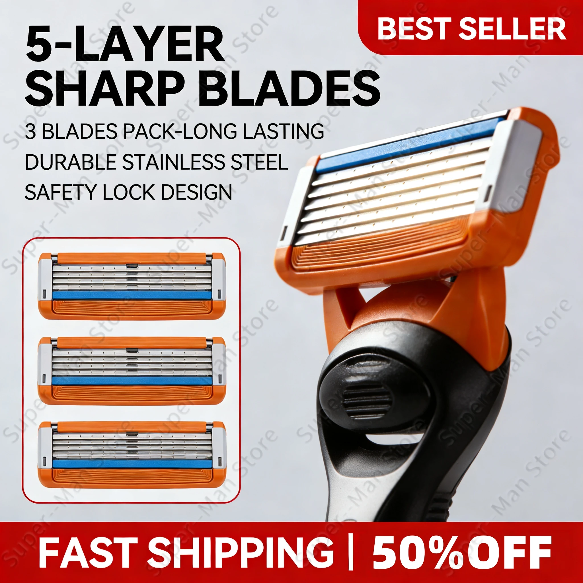 Lâmina de barbear masculina Fusion 5 atualizada, 5 camadas, manual de segurança, cabeça de barbear, lâmina antifricção, enchimento de barbear para barba