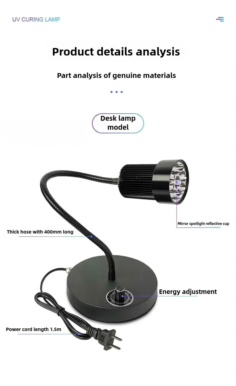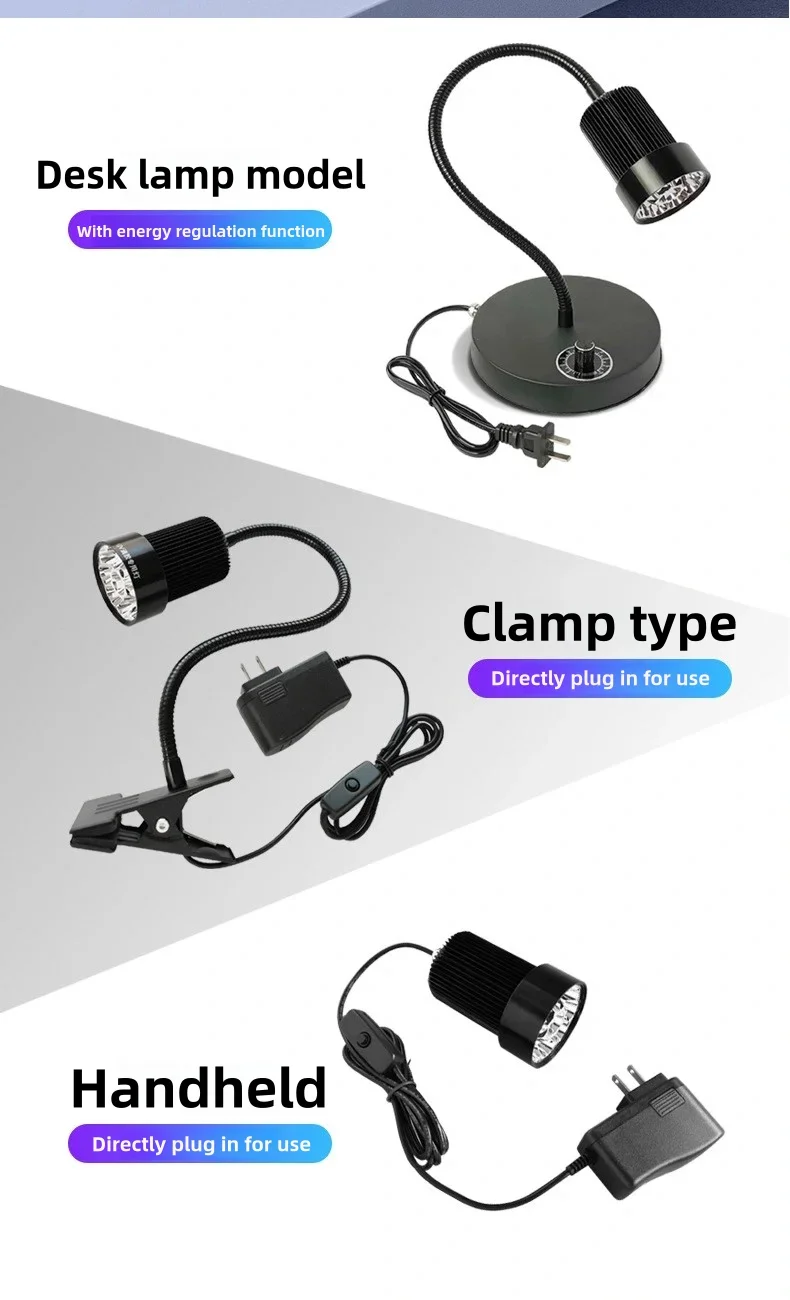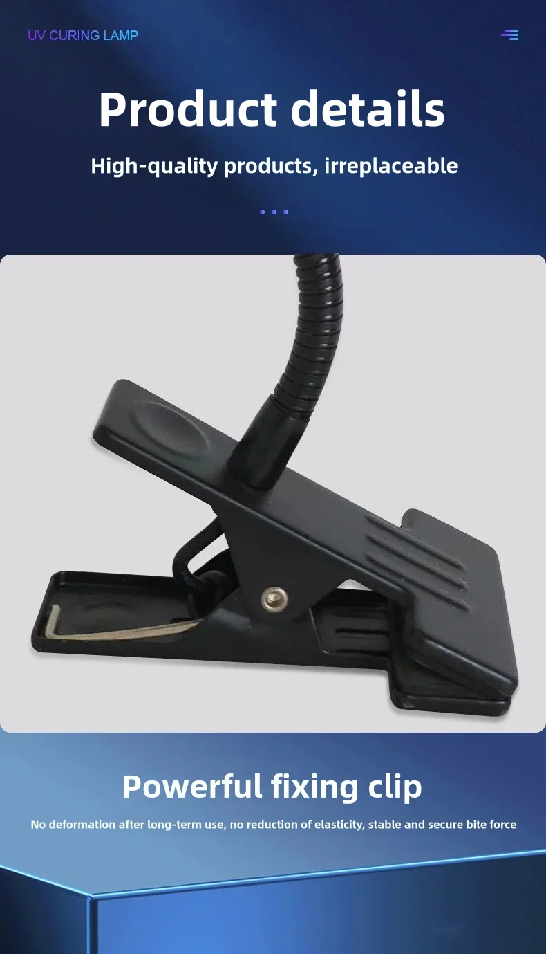 - > Lâmpada UV de alta energia 395nm 405nm para cura, tipo clipe ajustável, para resina sem sombra, tinta verde e reparo de celulares