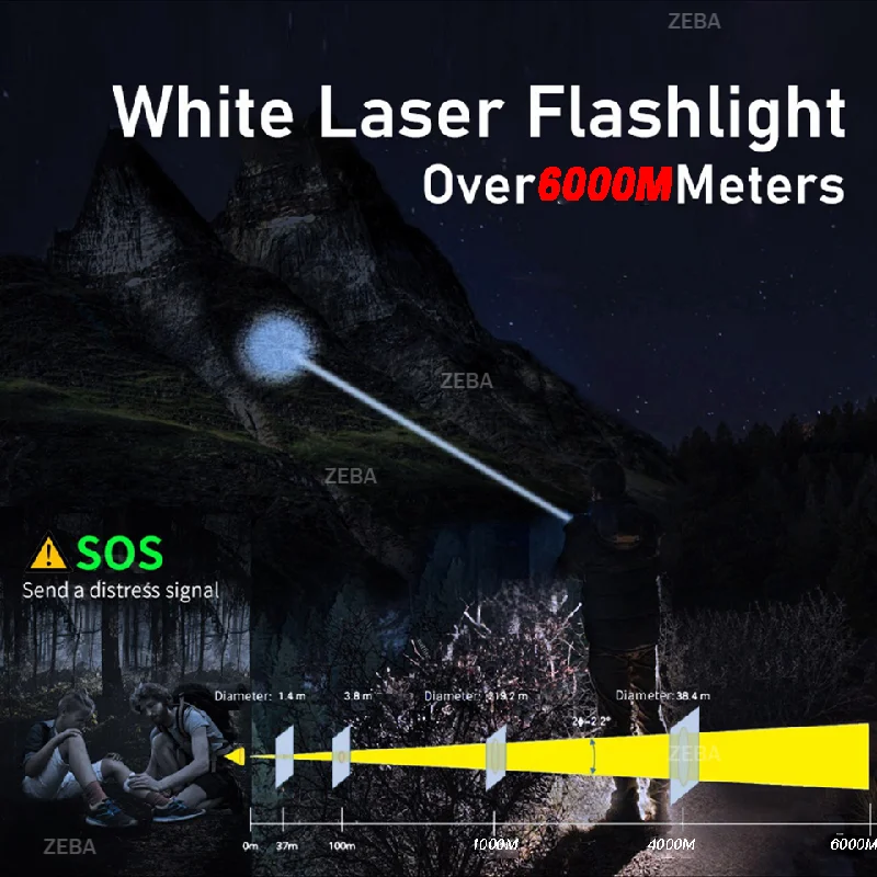 - > Lanterna mais poderosa de 98000000lm, 800w, led, recarregável, longo alcance, 6000m, luz tática, super brilhante, para pesca