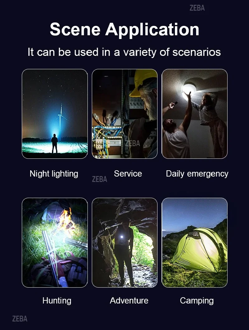 🔦Usando bateria 1*18650/26650, pode fornecer 15 horas de iluminação contínua.Suporta carregamento tipo C, você pode carregar a bateria mesmo ao ar livre.Ele também suporta saída de energia e pode carregar telefones celulares e outros dispositivos.Existem múltiplas faixas fluorescentes no corpo para facilitar o posicionamento rápido da lanterna à noite.