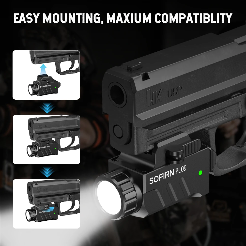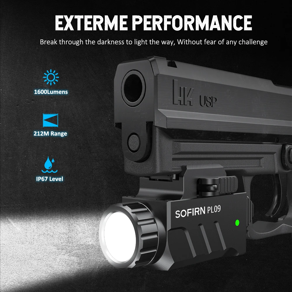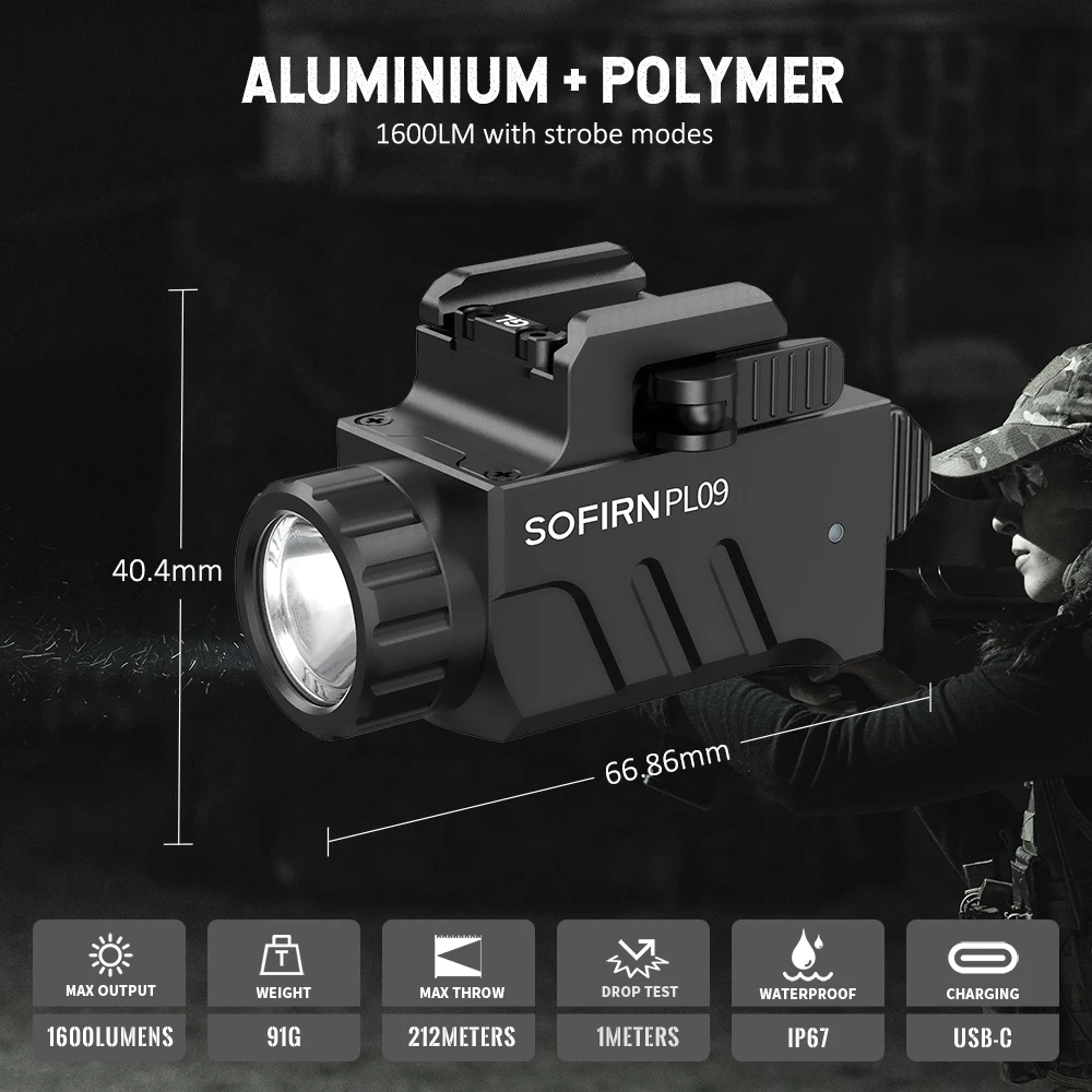 Lanterna SOFIRN PL09 1600lm Luz recarregável de liberação rápida Luz tática com interruptor duplo para trilho Picatinny