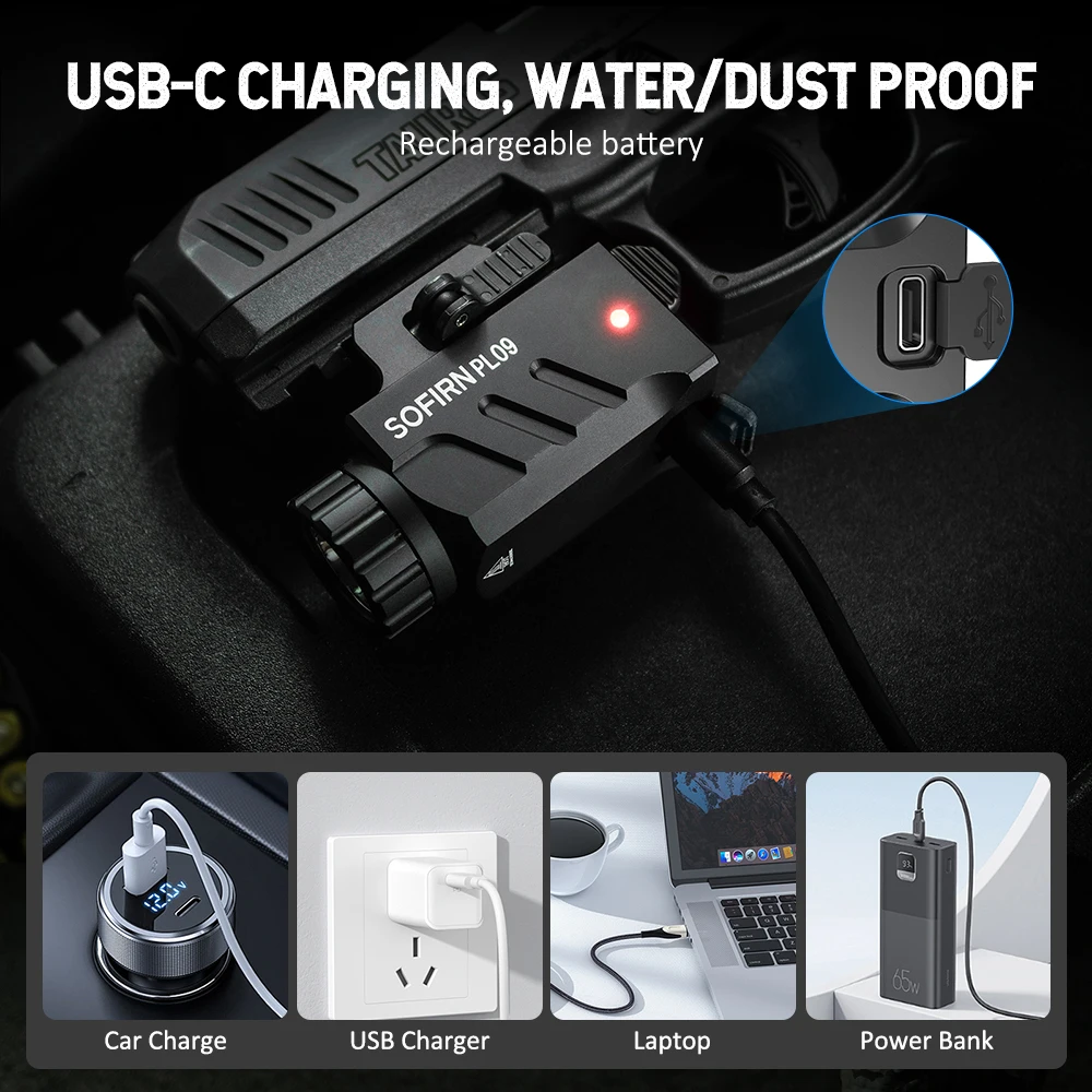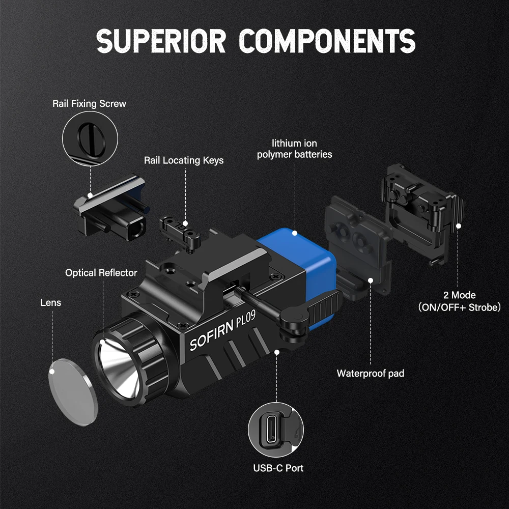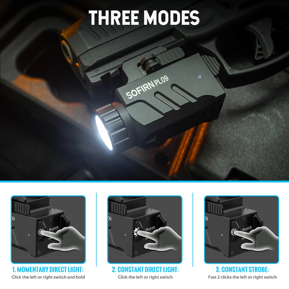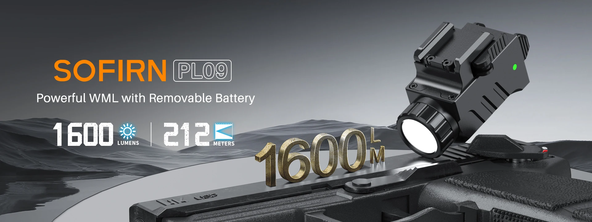 Lanterna SOFIRN PL09 1600lm Luz recarregável de liberação rápida Luz tática com interruptor duplo para trilho Picatinny