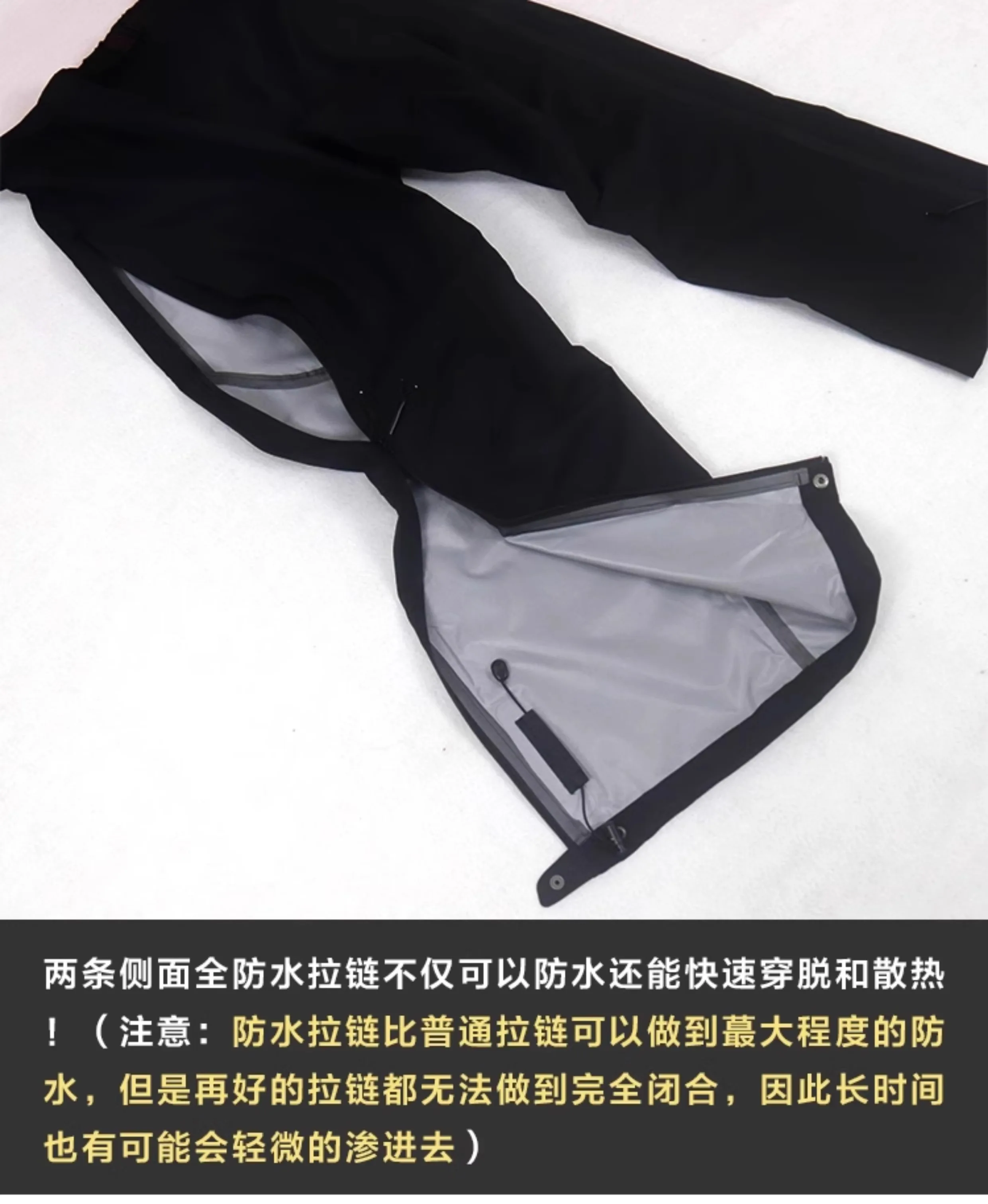 Two side fully waterproof zippers not only provide waterproofing, but also allow for quick on/off and heat dissipation