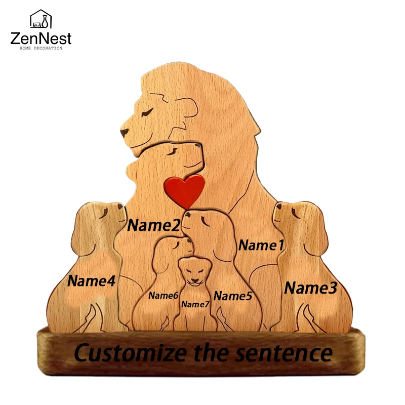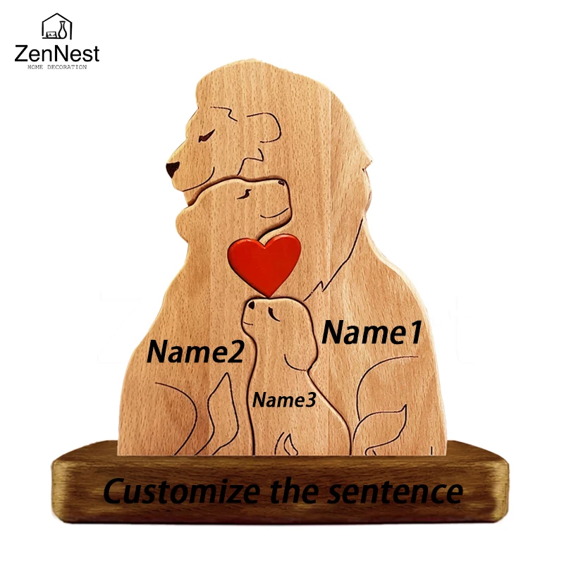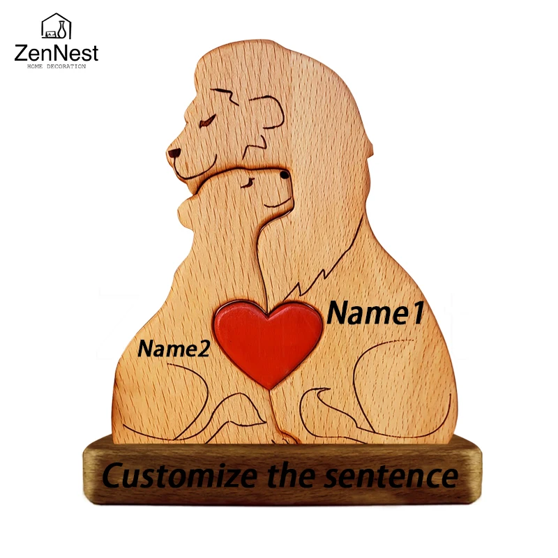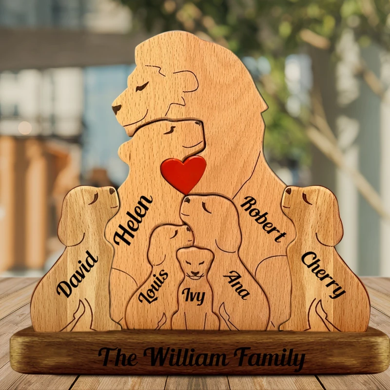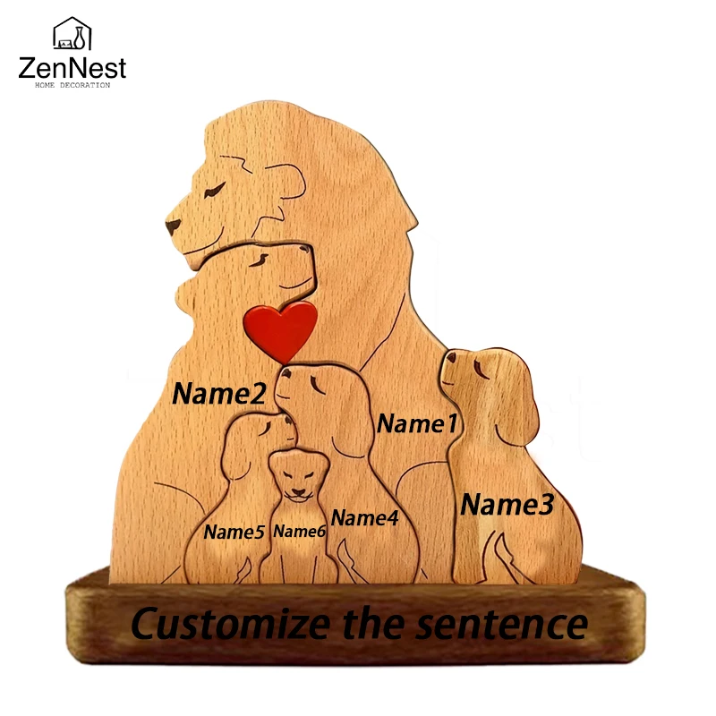 - > Leão de madeira família quebra-cabeça ornamento diy nome personalizado decorações para casa presentes de natal de ação de graças presentes para a mãe artesanato de arte