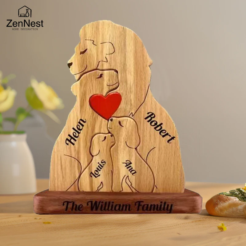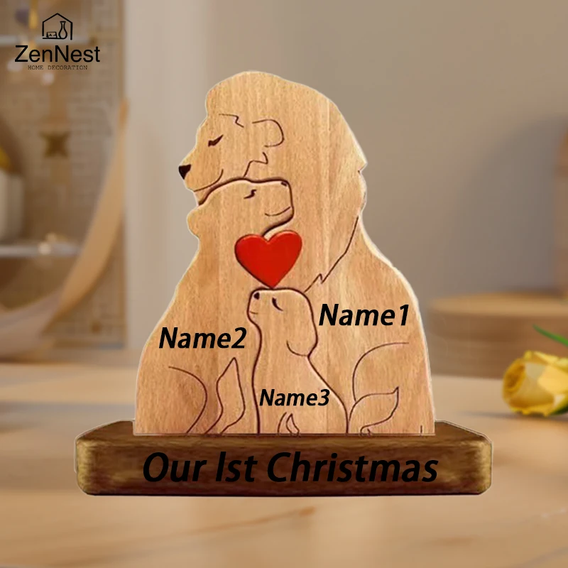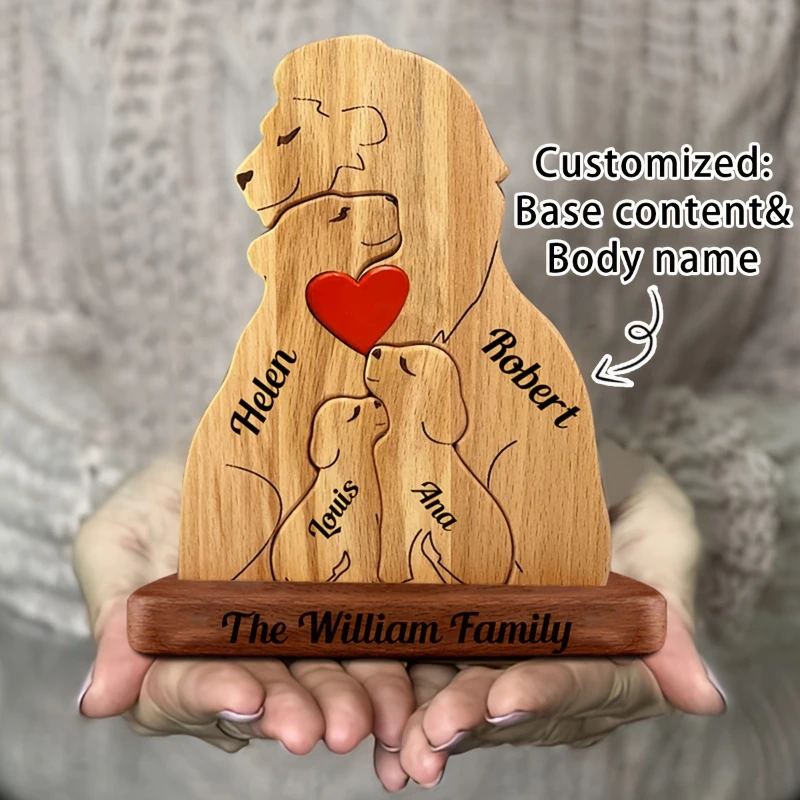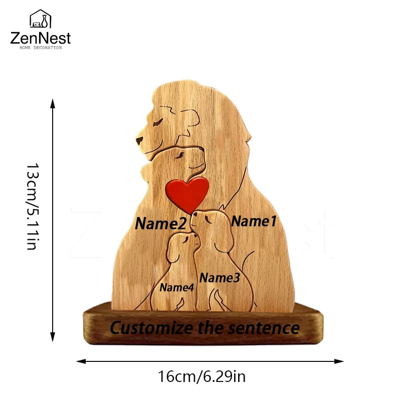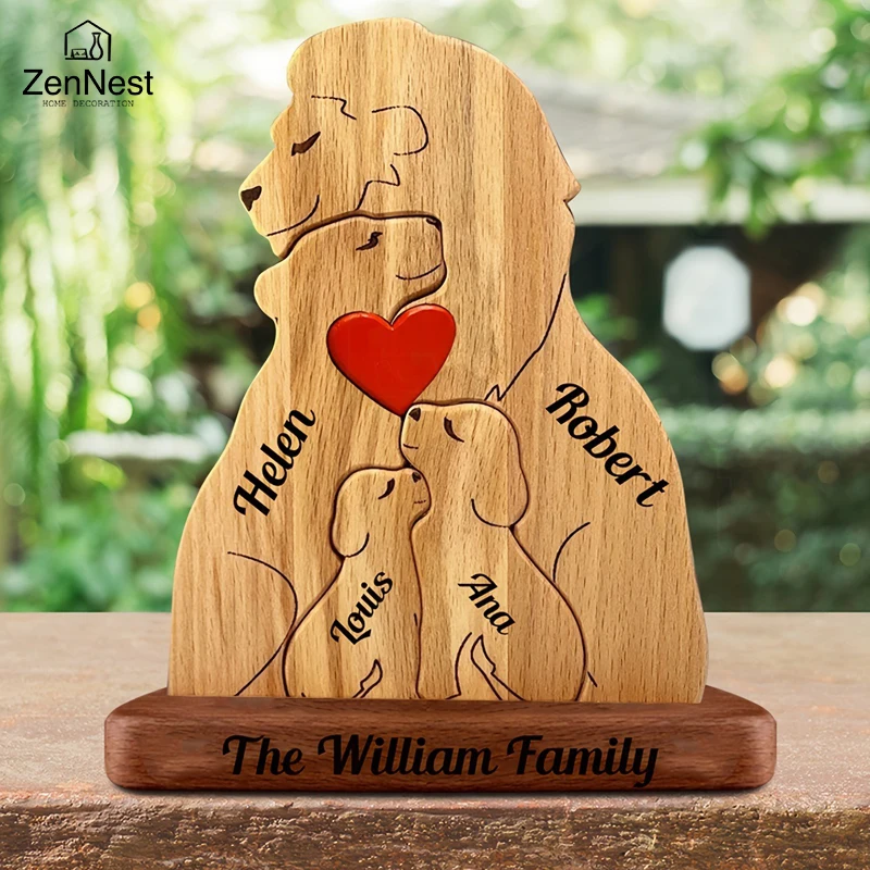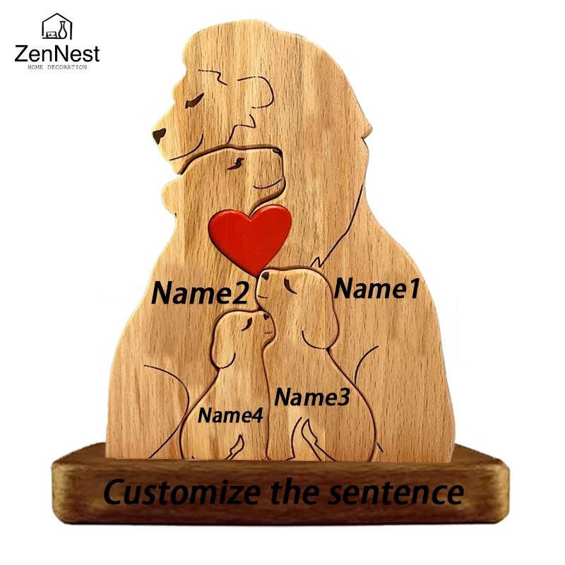 - > Leão de madeira família quebra-cabeça ornamento diy nome personalizado decorações para casa presentes de natal de ação de graças presentes para a mãe artesanato de arte
