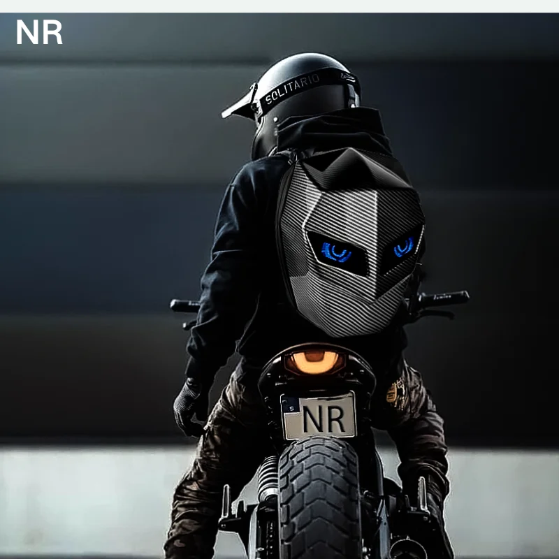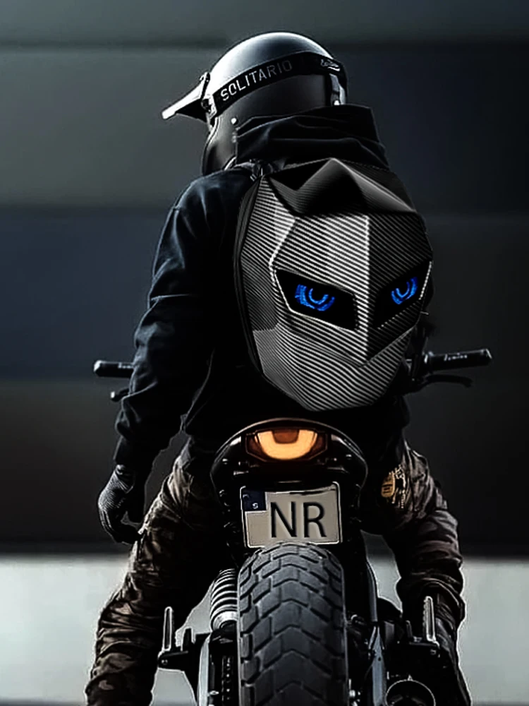 - > Led cavaleiro ciclismo mochila moda capacete da motocicleta bluetooth à prova dwaterproof água casca dura laptops sacos personalidade com olho