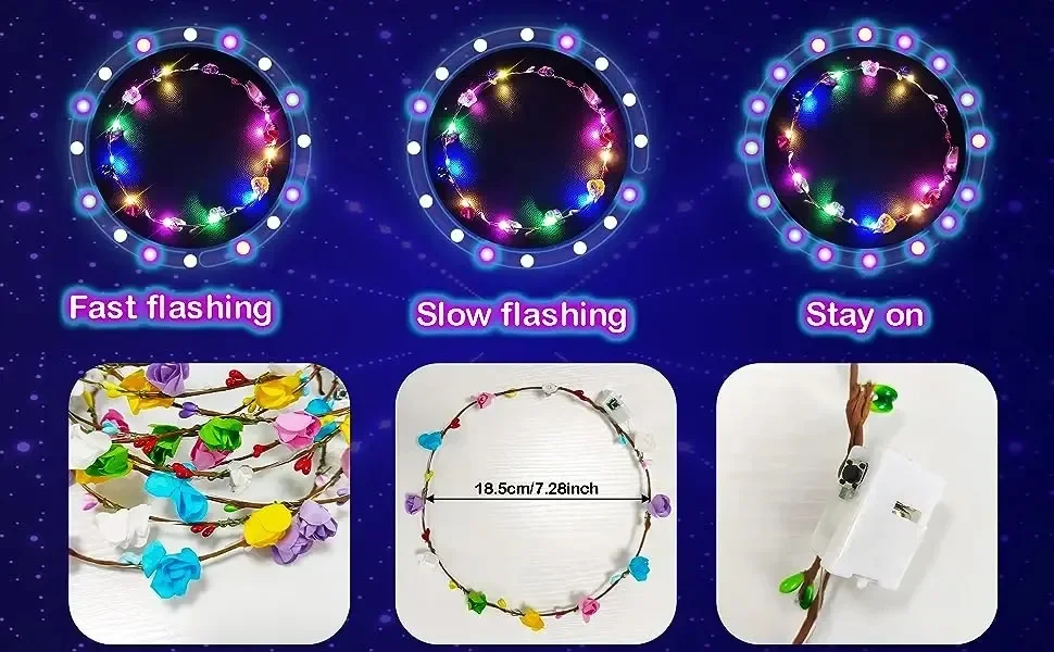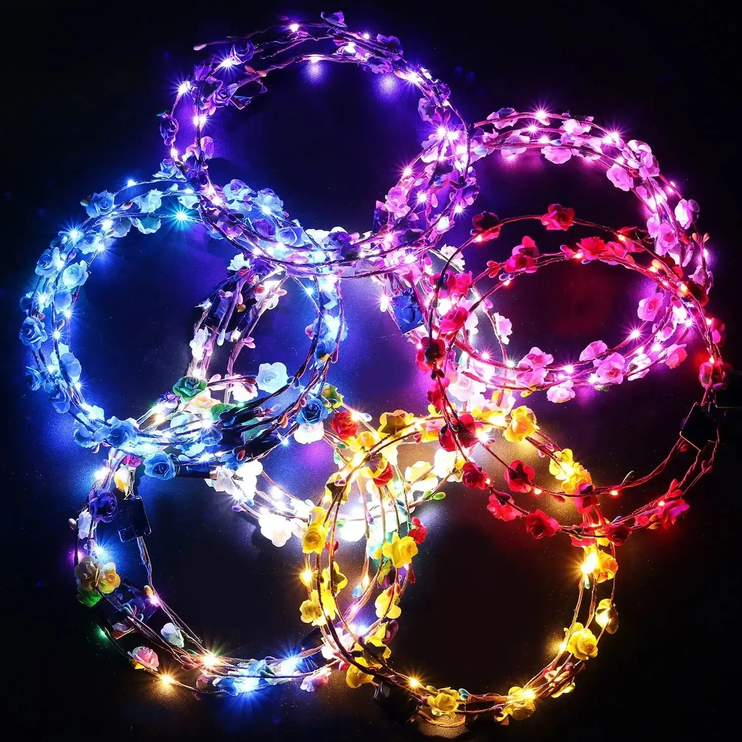 LED Light Up Flower Headband, Coroa de Cabelo, Brilhante Coroa Floral, Favores De Festa De Casamento De Aniversário, 10 Pcs, 20 Pcs, 40 Pcs, 60Pcs