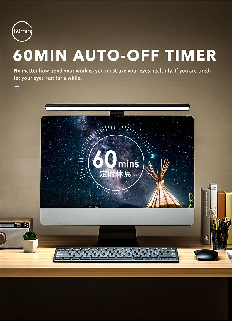 Led monitor de computador barra luz tela iluminação mesa usb rgb lâmpada para estudo mesa leitura stepless escurecimento lâmpada cronometragem 50cm/33cm
