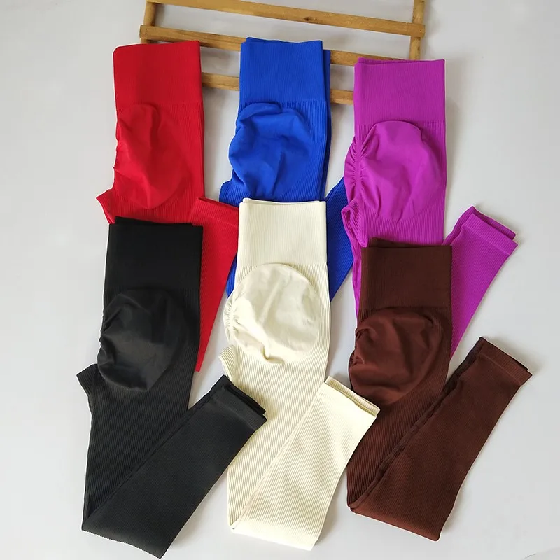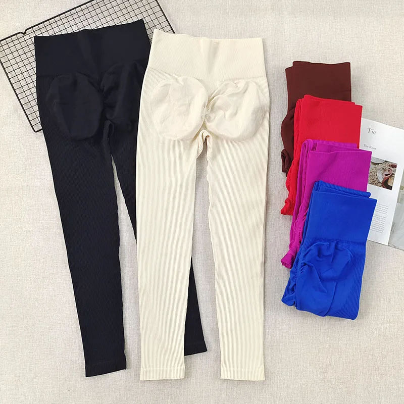 Leggings de ioga com nervuras de outono de inverno – elevador de pêssego espesso de cintura alta, calças de treino respiráveis de estiramento de 4 vias